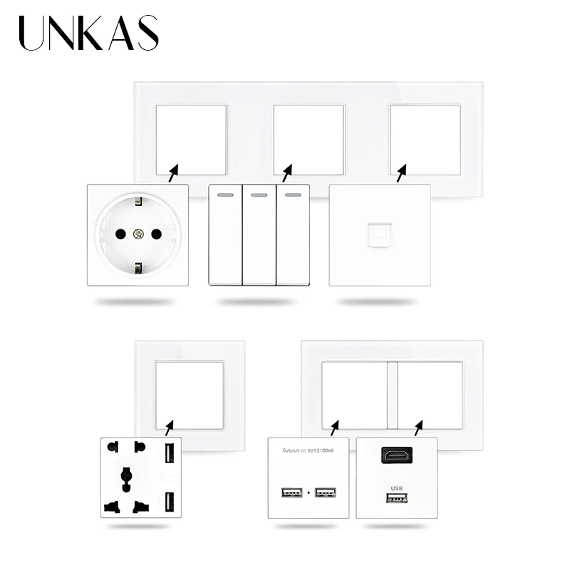 UNKAS модули DIY Бесплатная комбинация серый 1 2 3 4 банды 1 / 2 пути вкл/выкл серый настенный светильник кнопочный переключатель