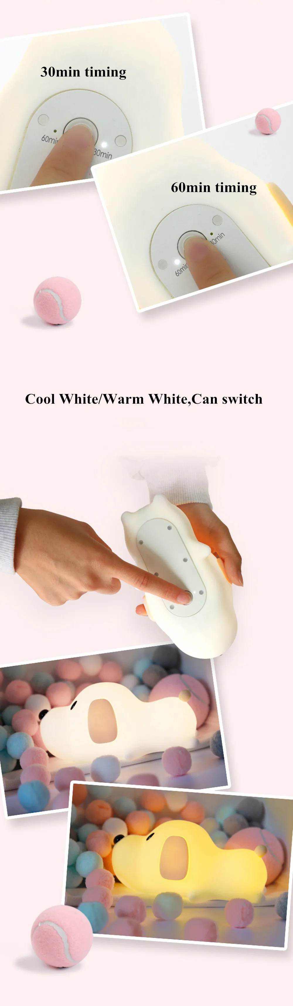 Прикроватная лампа для детей, детская силиконовая светодиодная Ночная лампа в виде собаки, сенсорный датчик, регулируемый таймер, лампа для щенка, USB, перезаряжаемая, для спальни
