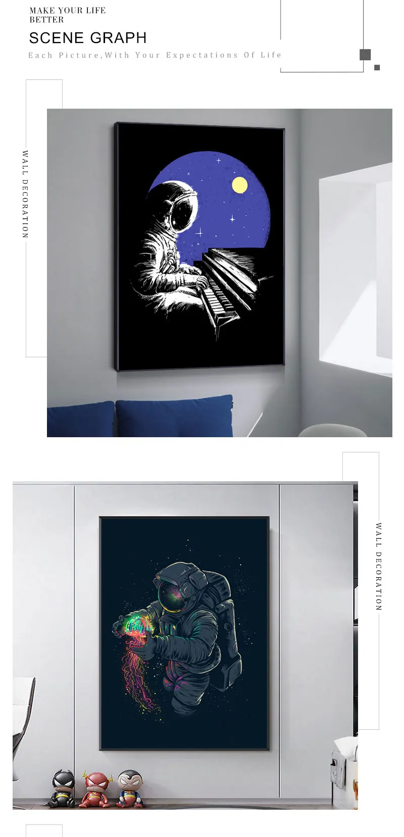 Астронавт Кит Холст Плакаты Медузы пианино в форме рыбки Moon космонавт арт Картины картина на стену печать Гостиная Украшения в спальню