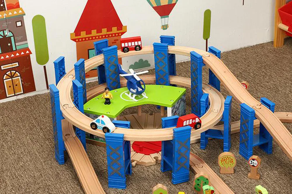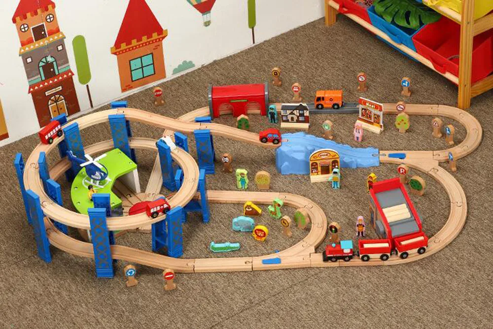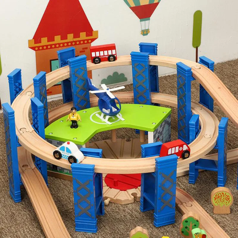 Набор деревянных треков для поезда, аксессуары для железной дороги, направляющие для мостов с деревянными игрушка для трека Thoma Biro для детей