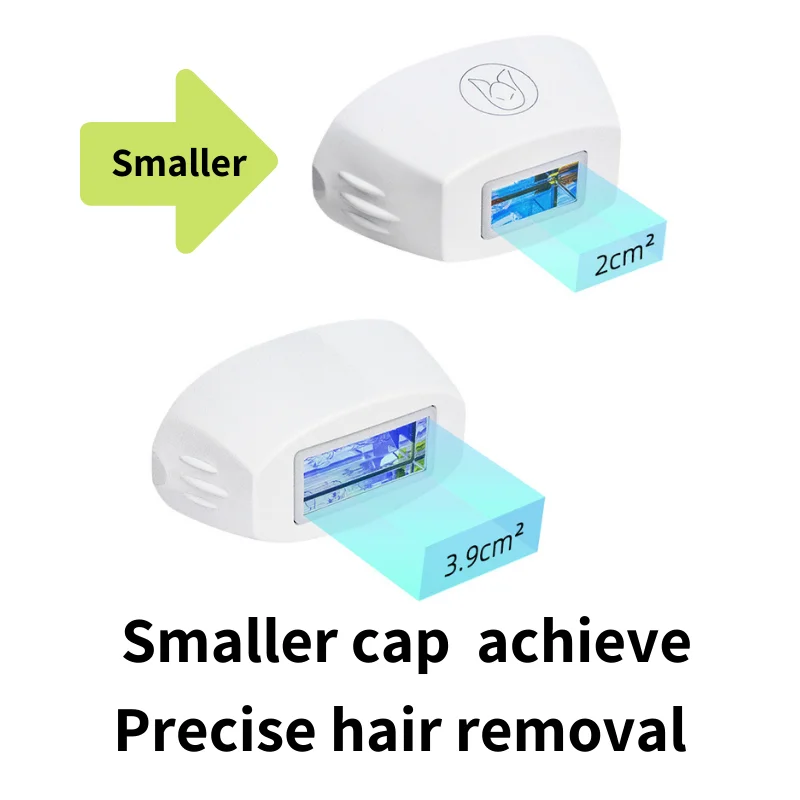 2cm² Precision Cap for those small hard to reach areas ① upper lip ②bikini ③finger PROs: More accurate hair remove,The beam energy is more concentrated