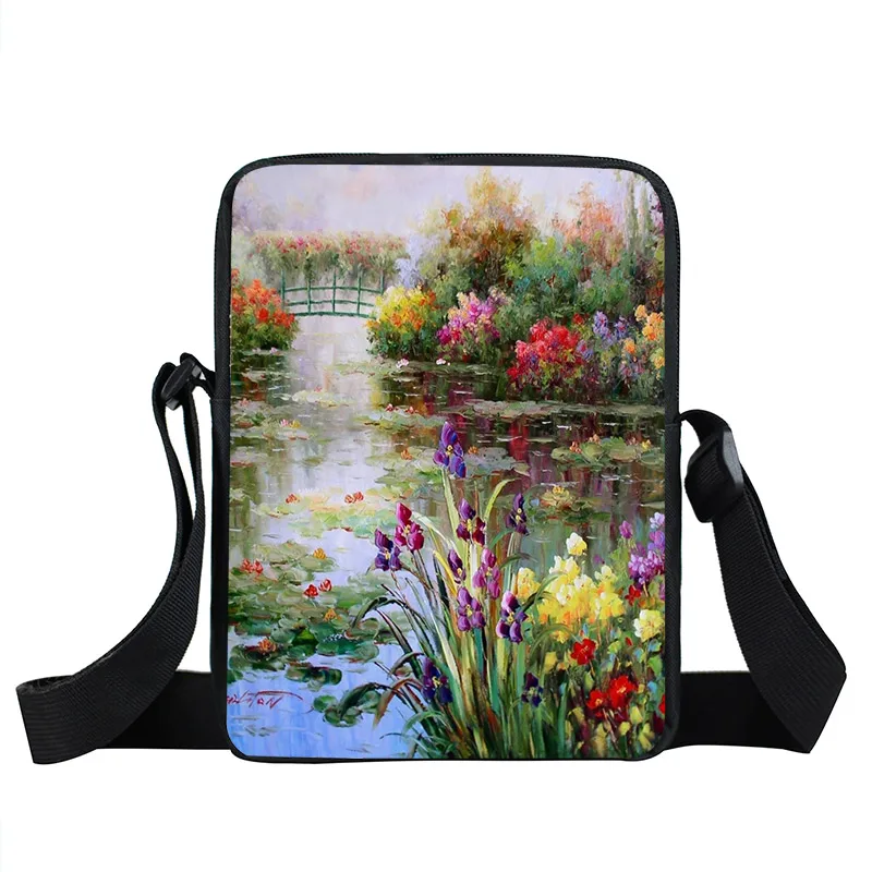Винтажный рисунок водяной лилии, сумка через плечо для подростков, женская сумка через плечо для покупок, сумка через плечо с принтом лотоса для мальчиков и девочек, дорожная сумка-мессенджер, подарок