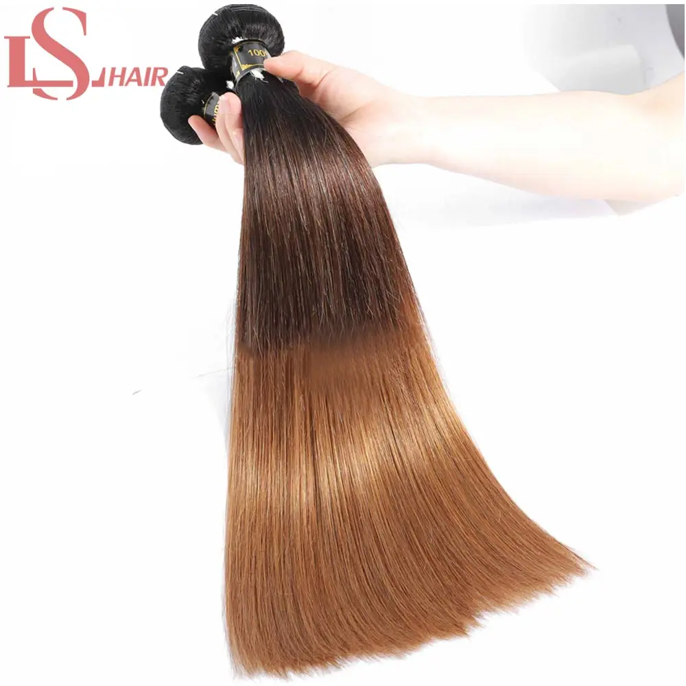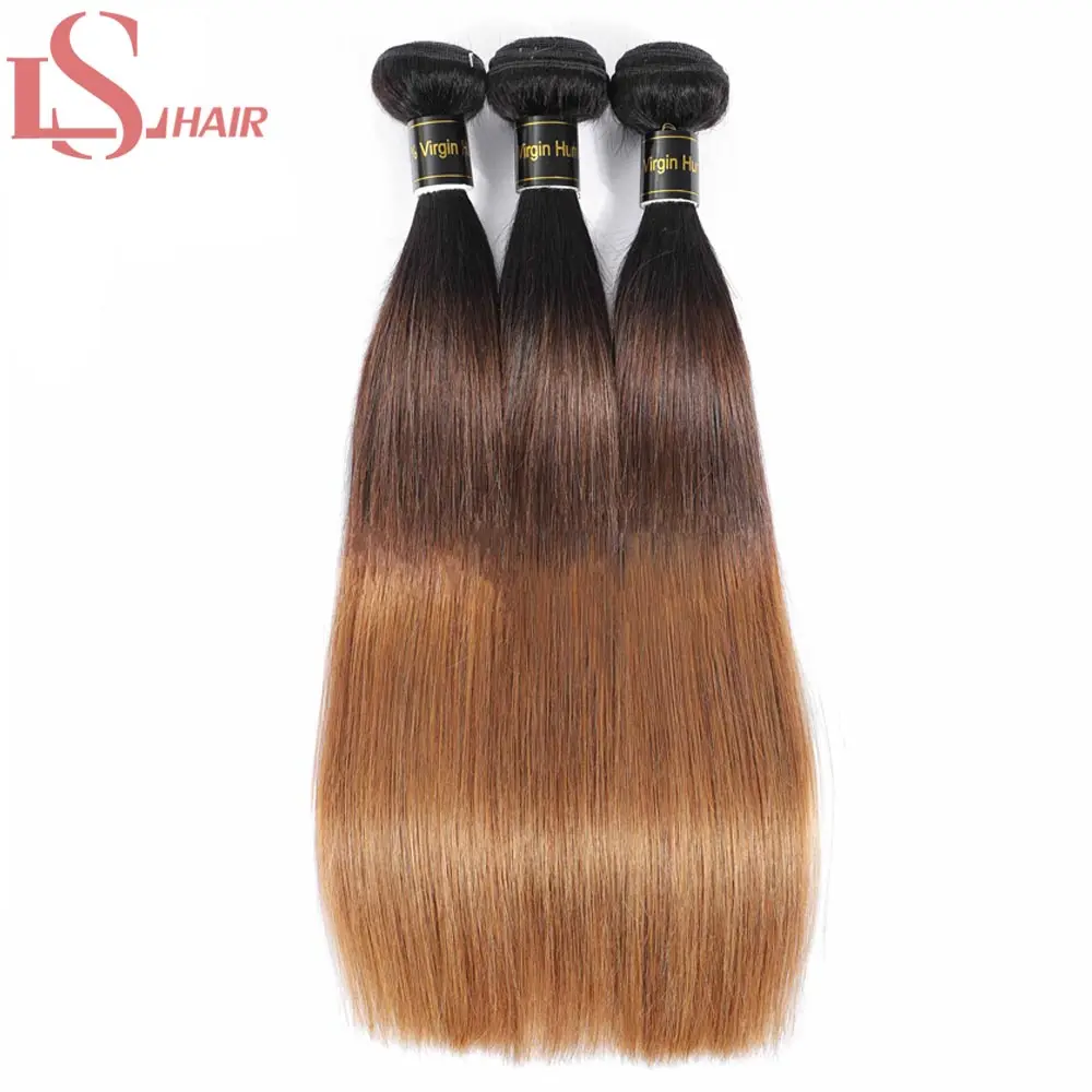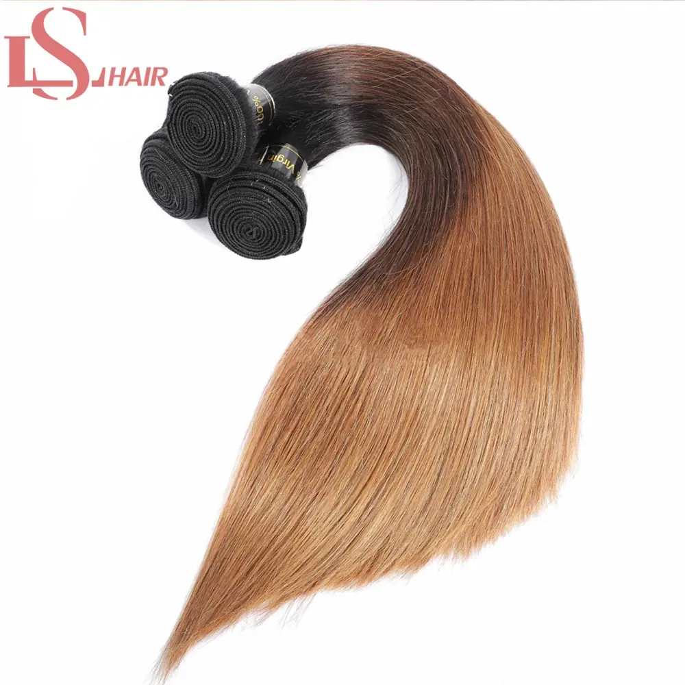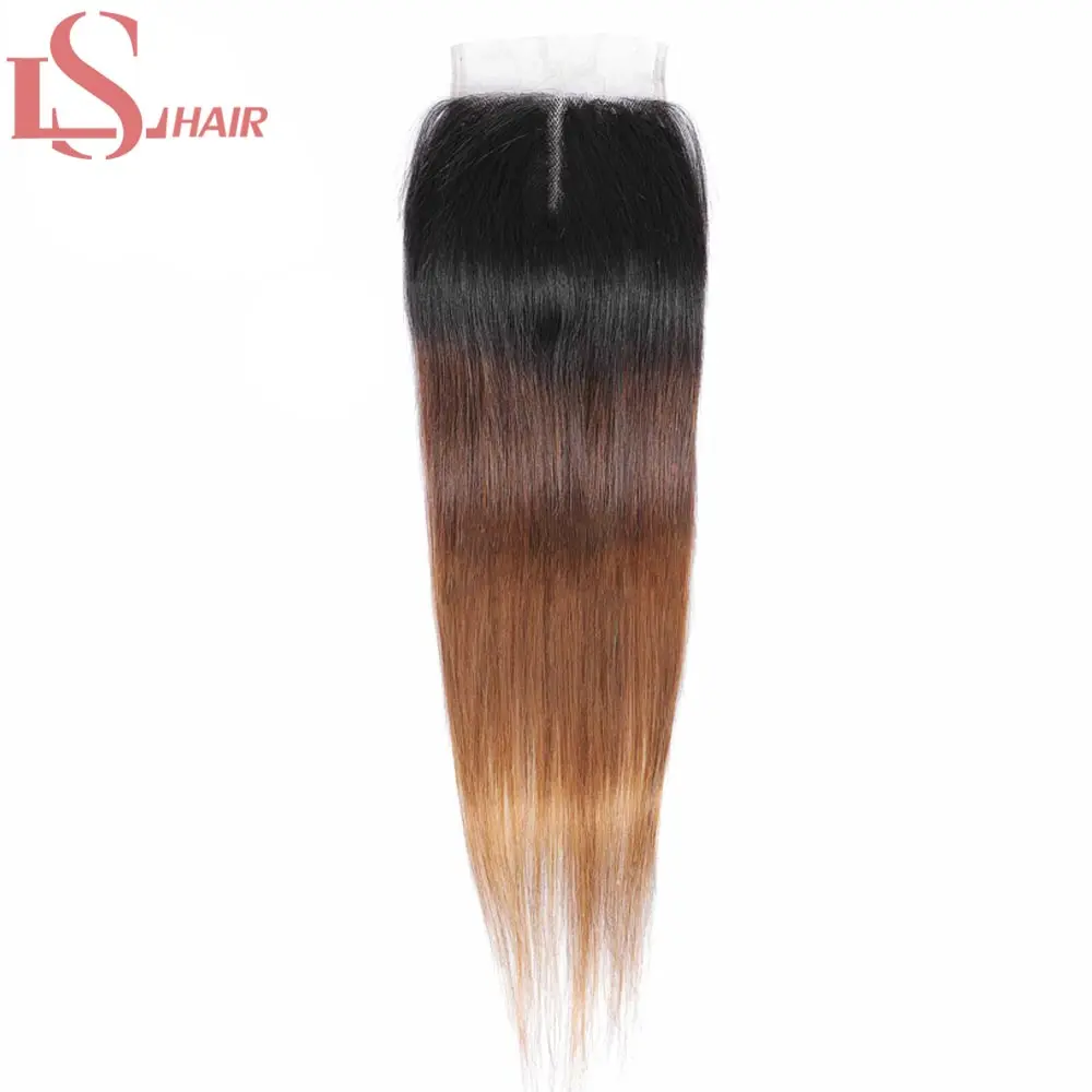 Пряди бразильских волос LS, волнистые, с закрытием, прямые человеческие волосы с эффектом омбре, 3 пряди с кружевной застежкой 4x4X1, 1B430 Реми