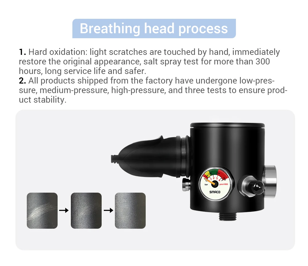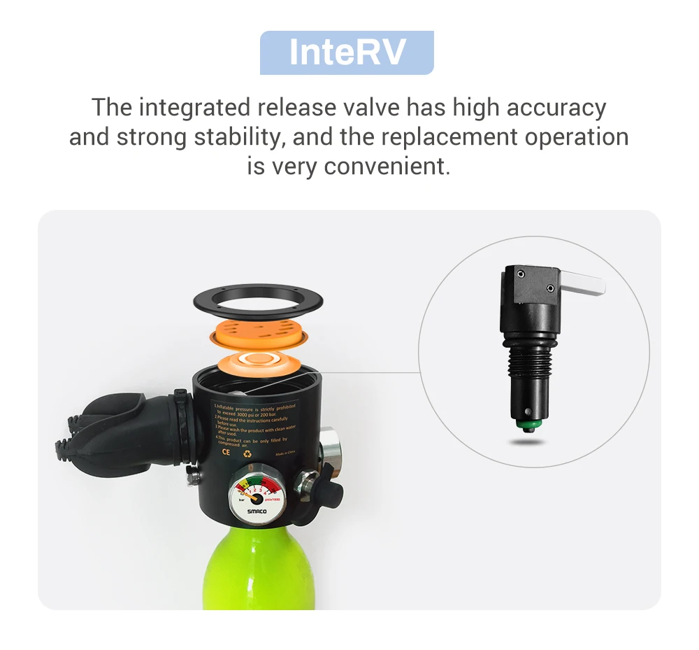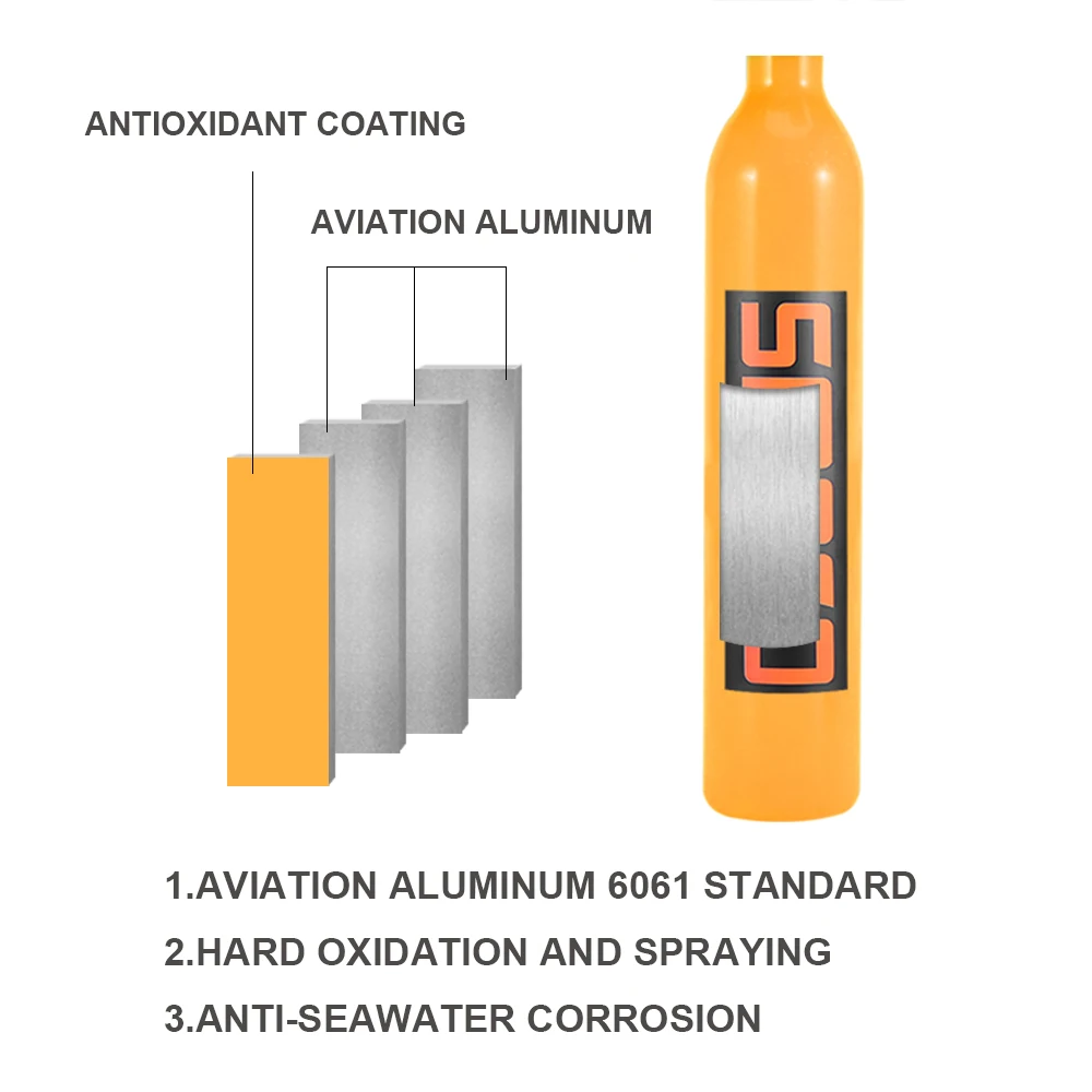 Компактный портативный легкий, легко носить с собой. Дышащие подводные погружения с полной свободой. Поддерживает 3 типа надувания. Изготовлен из авиационного алюминиевого материала и соответствует стандартам производства оборудования для дайвинга.