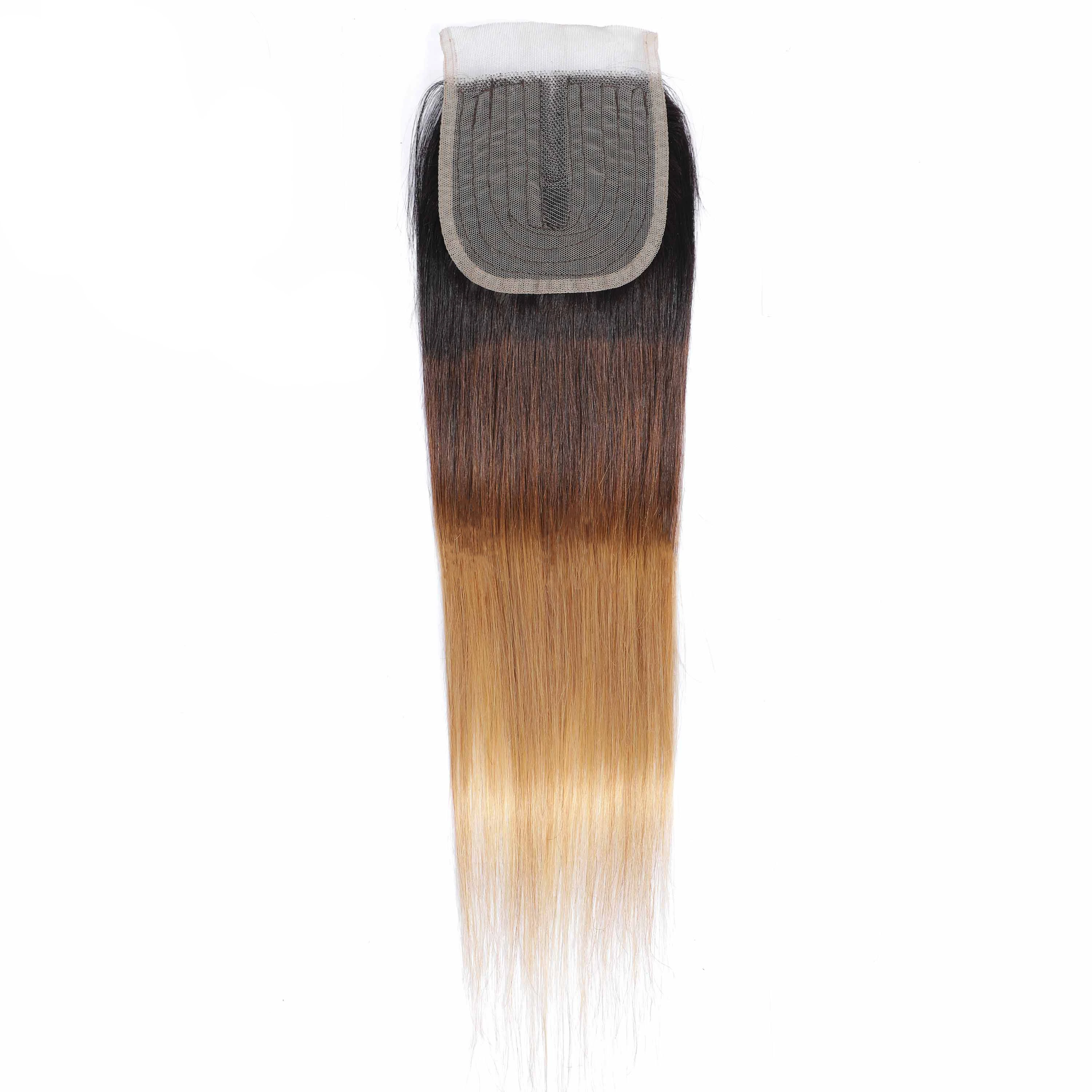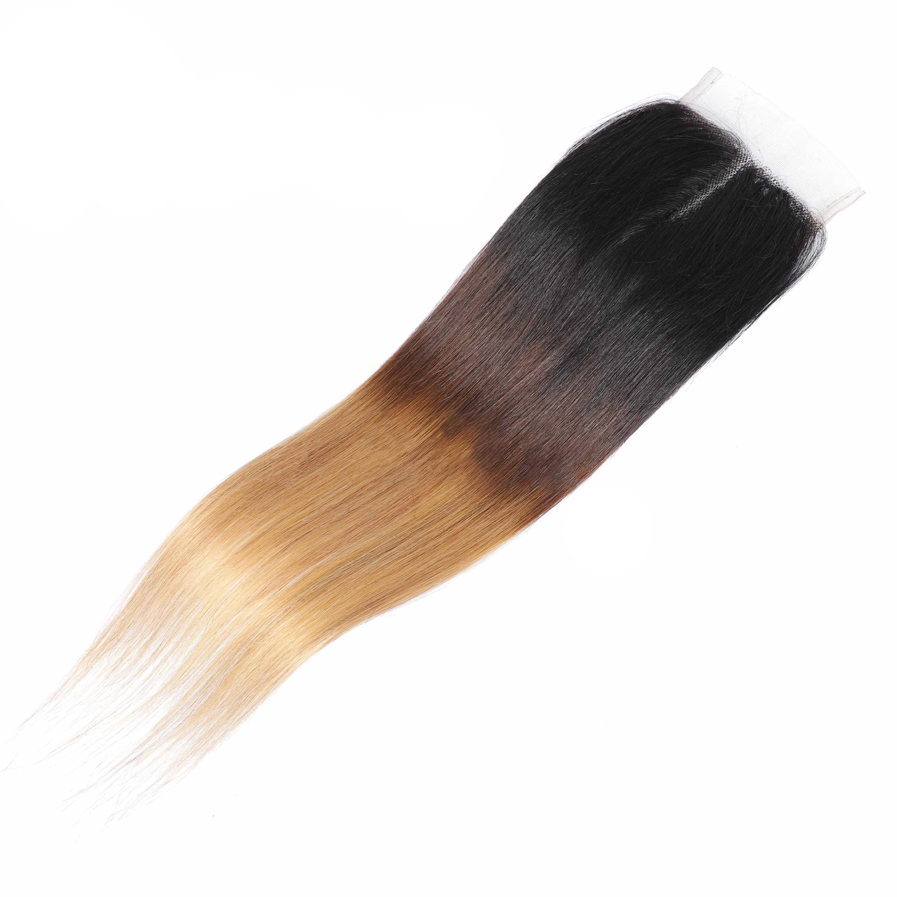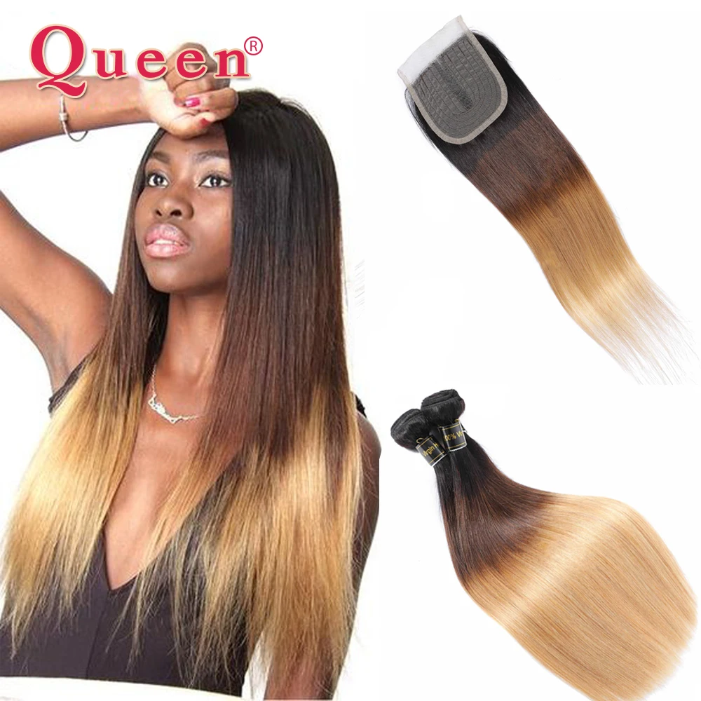 Прямые пряди человеческих волос с закрытием бразильские 1B/4/27 Ombre пряди с закрытием T Prat закрытие с пряди Remy Queen