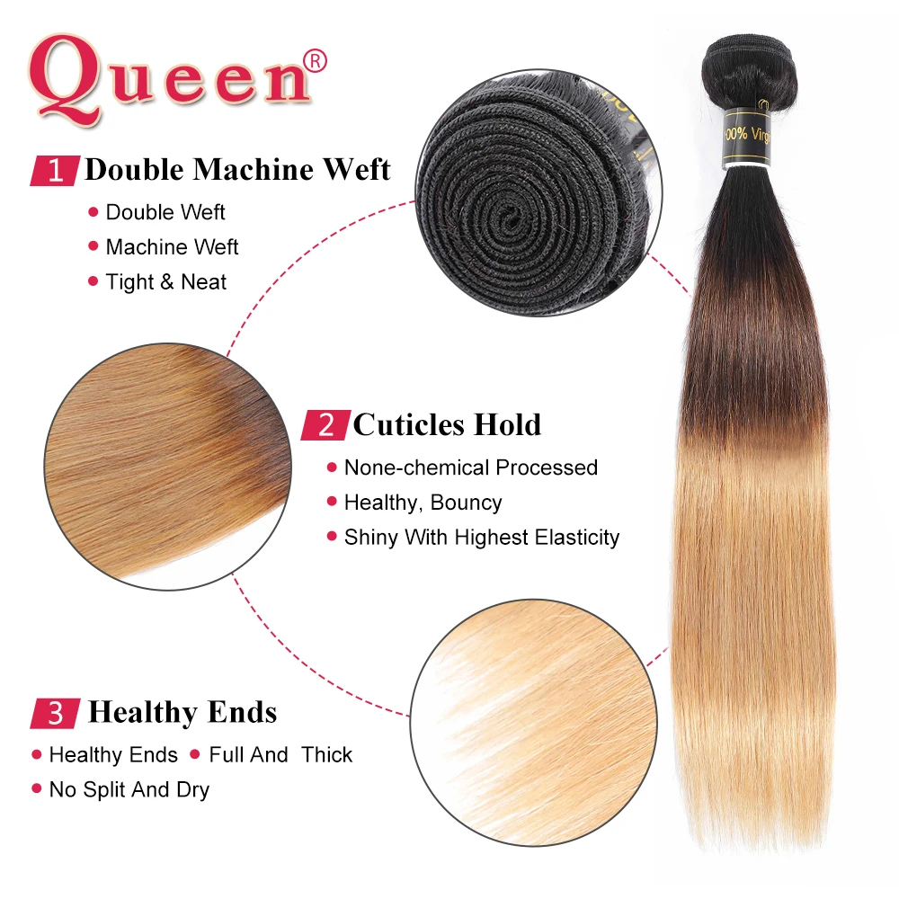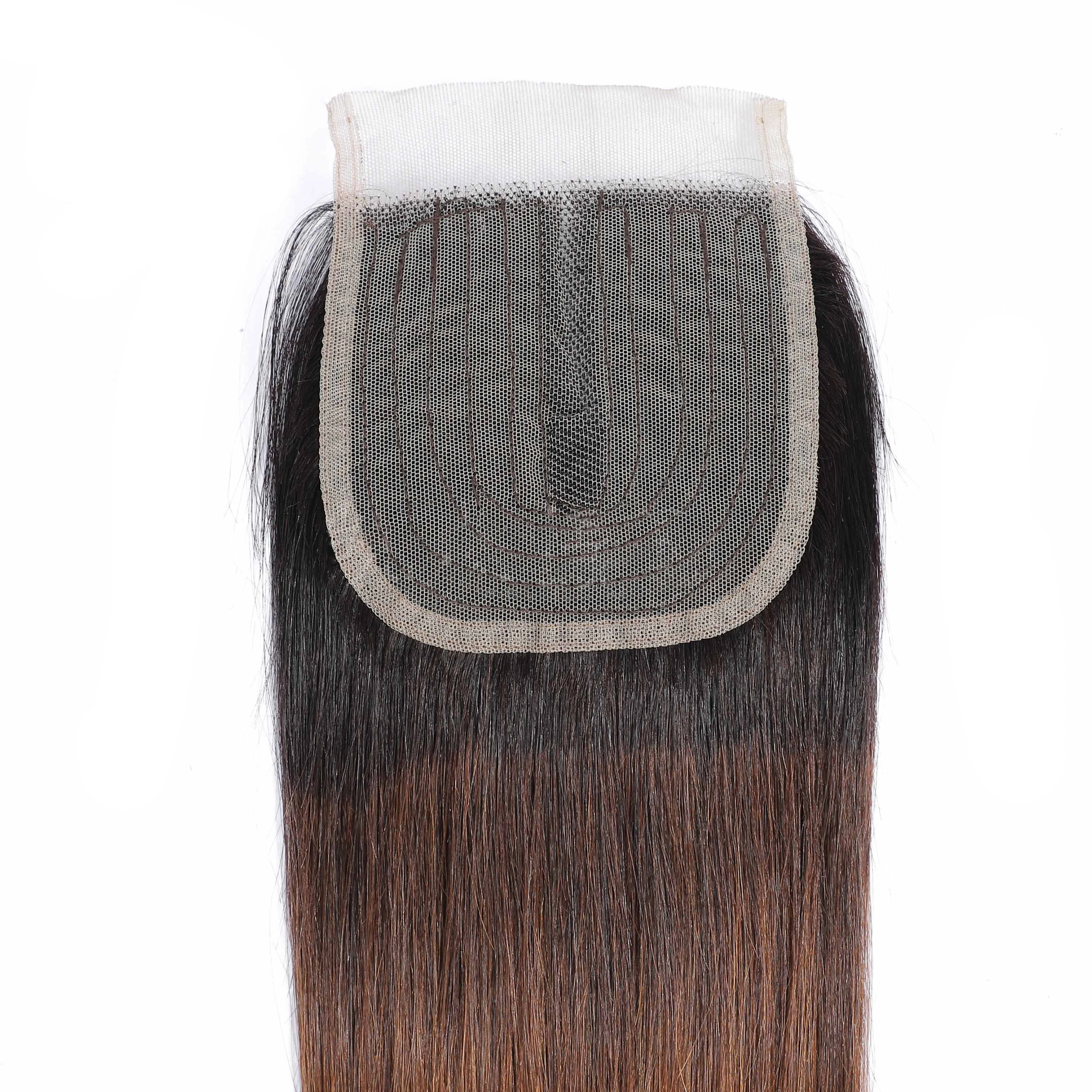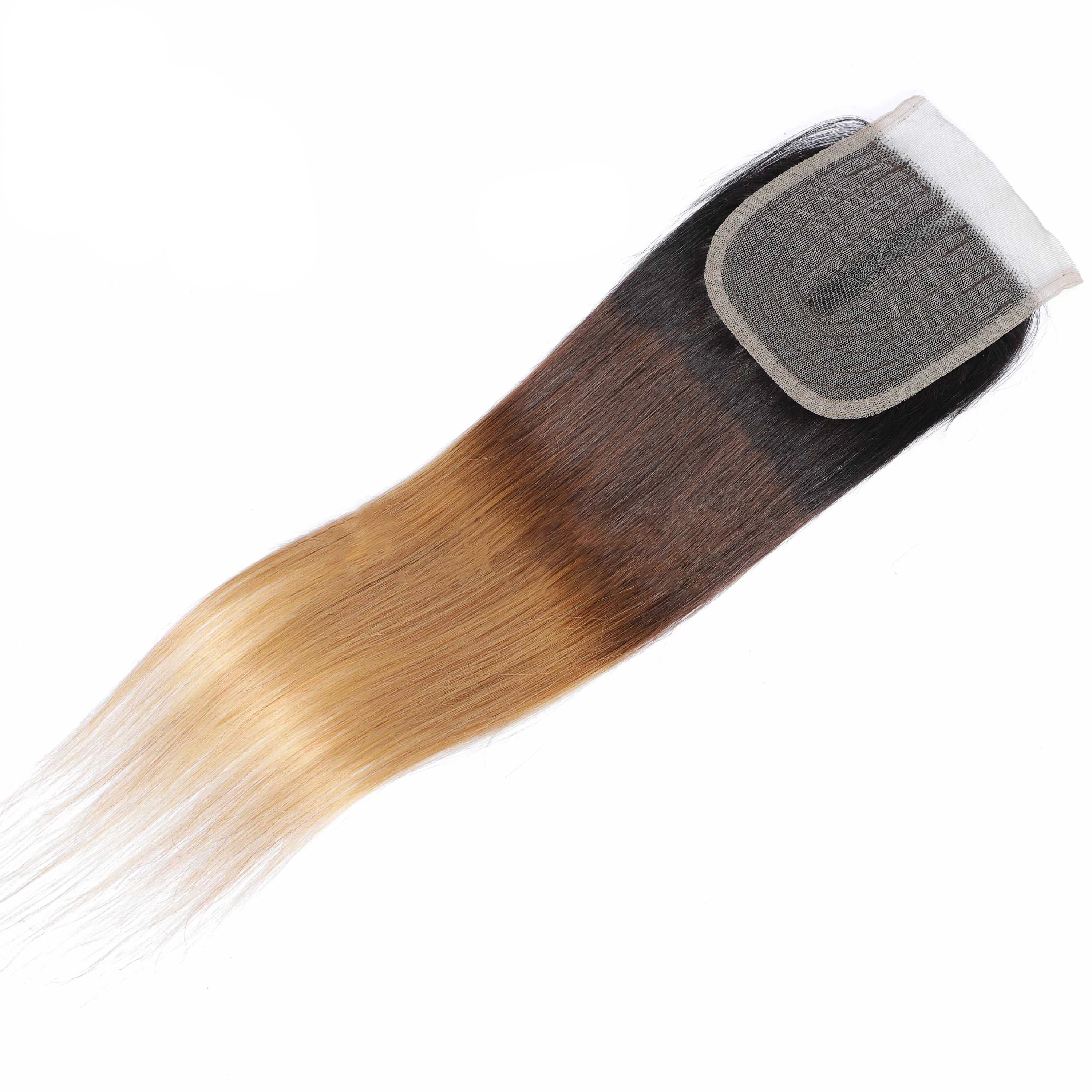 Прямые пряди человеческих волос с закрытием бразильские 1B/4/27 Ombre пряди с закрытием T Prat закрытие с пряди Remy Queen