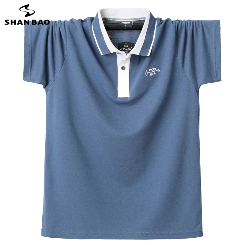 SHAN BAO в классическом стиле больших размеров свободного покроя рубашка-поло с коротким рукавом 2021 летние брендовые деловые повседневные мужские вышитые рубашки поло