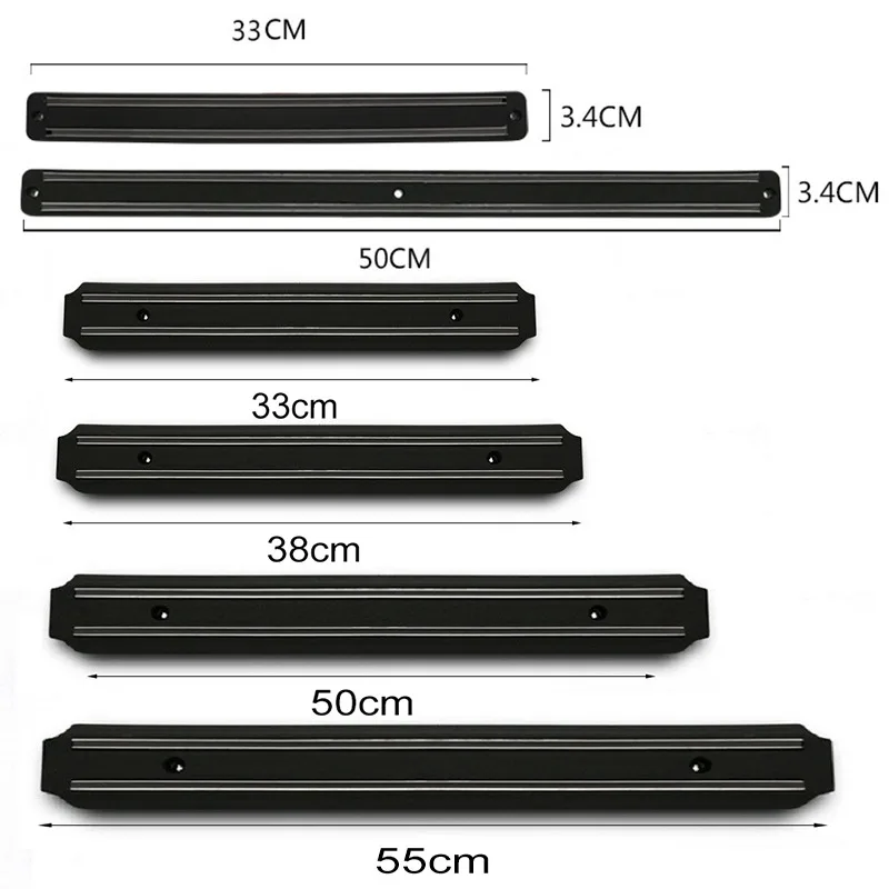 Размер: 330*34*13 мм/500*34*13 ммМатериал: магнит, резина + пластикЦвет: черныйПосылка: 1 держатель ножа, 2 винта