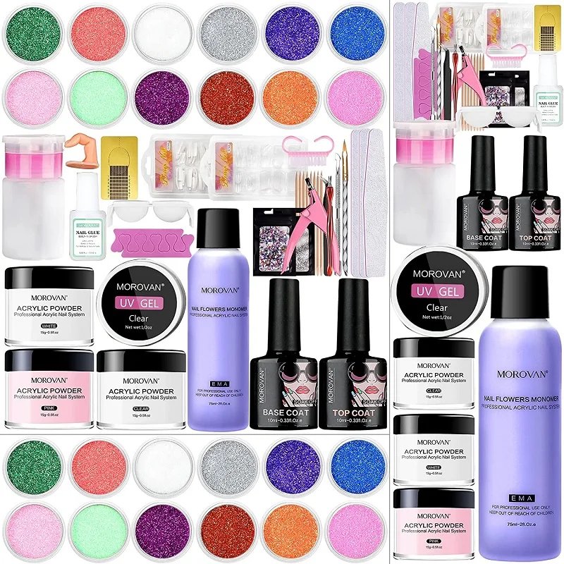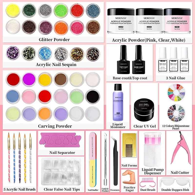 -Набор акриловых ногтей профессиональный со всем, таких как 18 цветов порошка для резьбы, 12 цветов блестящий порошок и 6 акриловых блестка для ногтей, акриловая пудра, акриловый жидкий мономер, практика рук для акриловых ногтей, кисть для акриловых инструментов для ногтей, прозрачный строительный гель, прозрачные Типсы для акриловых ногтей, Базовое покрытие и т. д. полный комплект акриловые материалы для маникюра идеально подходит как для профессиональных мастеров по маникюру, так и для любителей самостоятельного маникюра. Оптимизирован для всех сезонов!