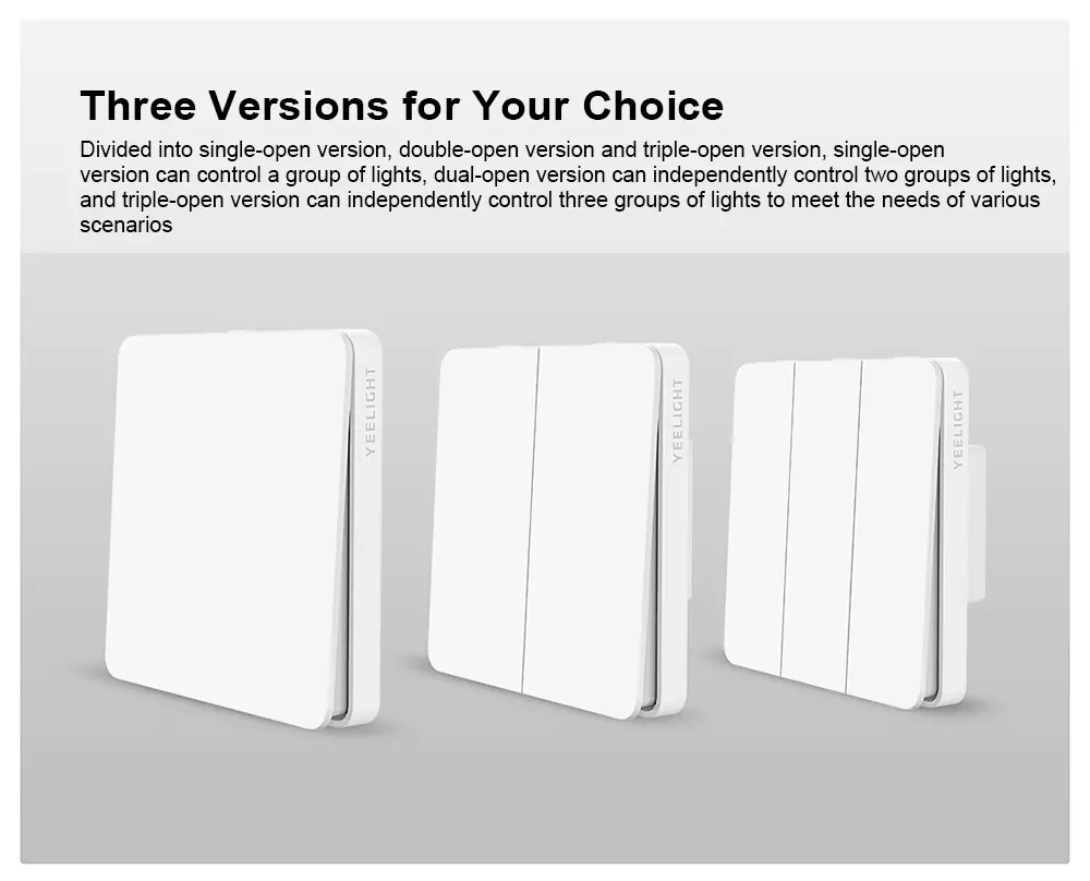 Разделенная на однооткрытую версию, двухоткрытую версию и тройную открытую версию, однооткрытую версию можно управлять группой ламп, двухоткрытую версию можно самостоятельно управлять двумя группами ламп, И тройная открытая версия может самостоятельно контролировать три группы света для удовлетворения потребностей различных сценариев