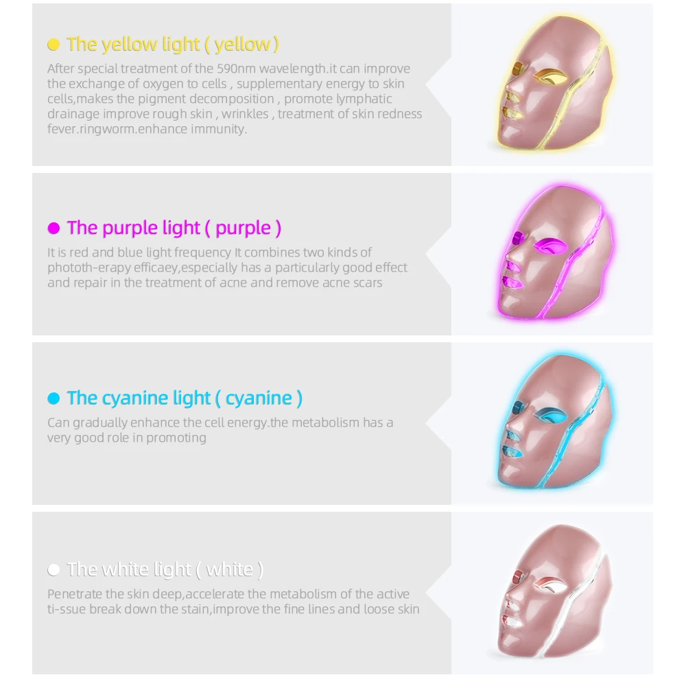 Маска светодиодная для омоложения кожи шеи, 7 цветов