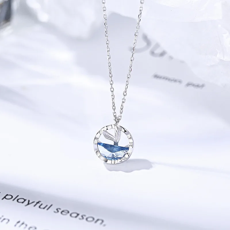 Модное креативное ожерелье с подвеской в виде русалки с голубым кри...