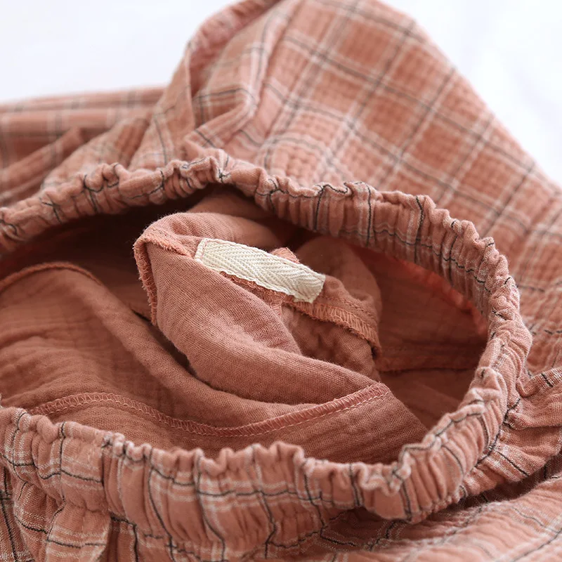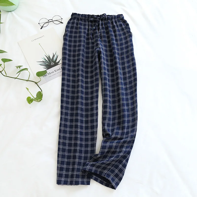 Брюки в клетку для мужчин и женщин, домашние штаны из хлопка и креп...
