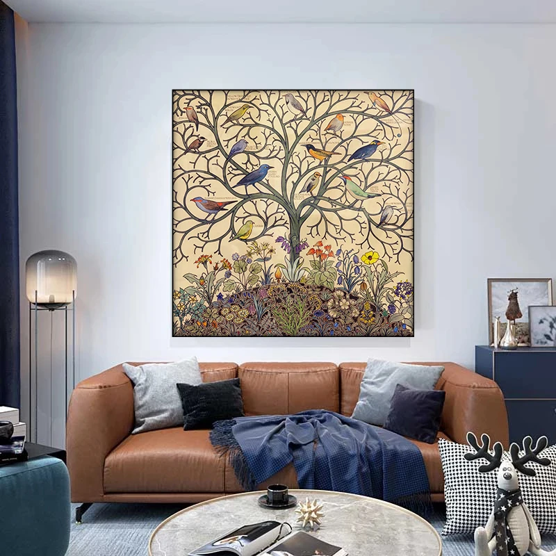 Картина на холсте с изображением Древа Жизни Тропических птиц, экзотические плакаты с птицами и принты, настенные картины для гостиной, домашний декор