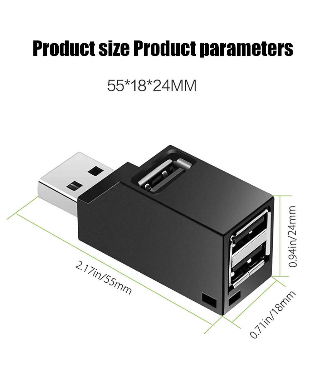 USB-концентратор USB 3,0, мини-разветвитель для ПК, компьютера, Dell, Macbook Pro, аксессуары, 3 порта, USB 2,0, для кардридера, зарядки ноутбука