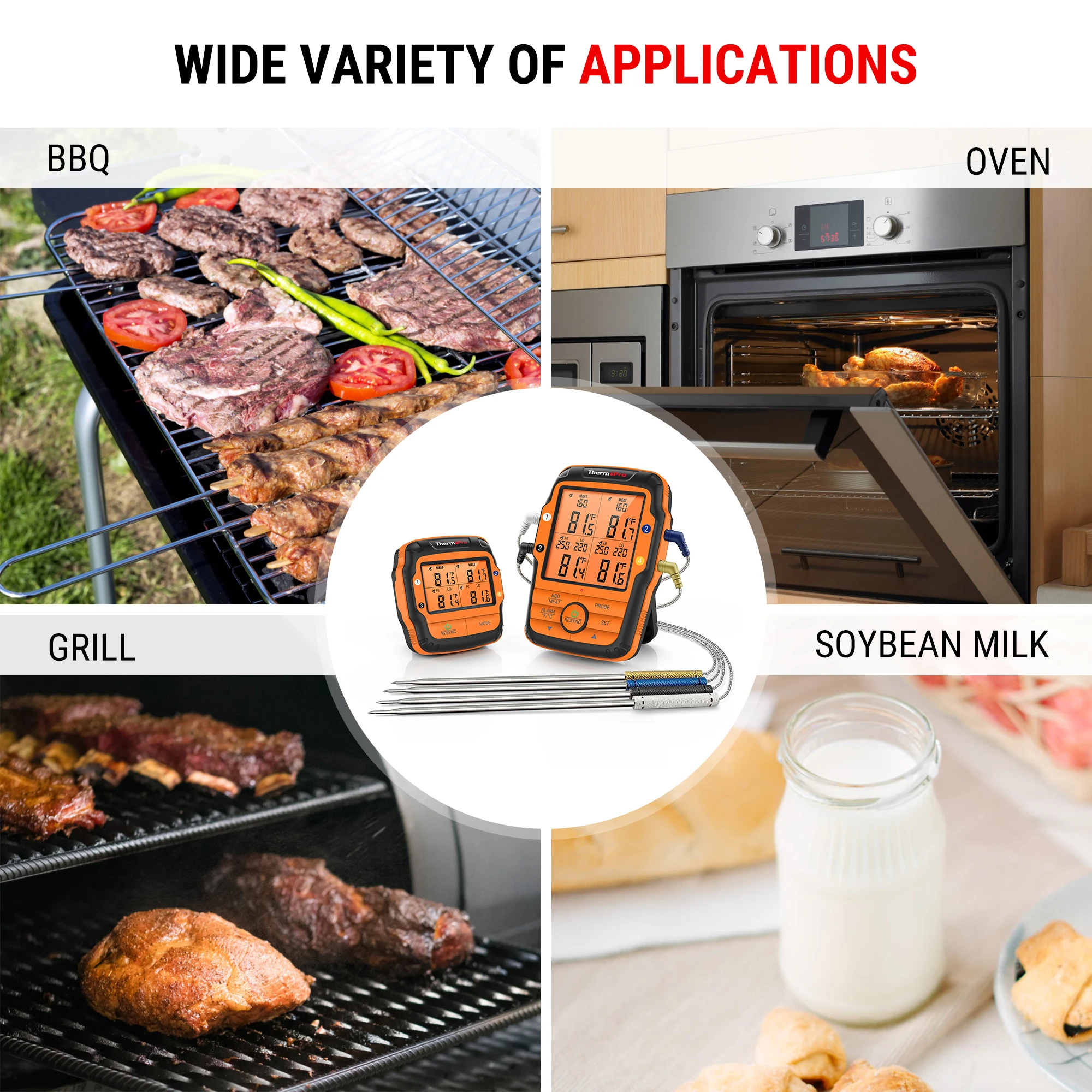 Цифровой Кухонный Термометр ThermoPro TP27C, кулинарный термометр с 4 щупами и подсветкой для мяса, духовки, молока, барбекю