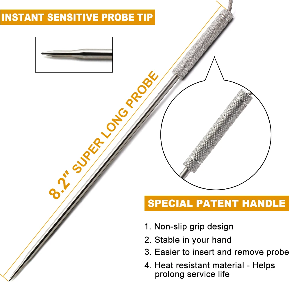 Беспроводное расстояние до 150 м, и вы сможете дистанционно контролировать температуру приготовления пищи в пределах этого диапазона 150 м.