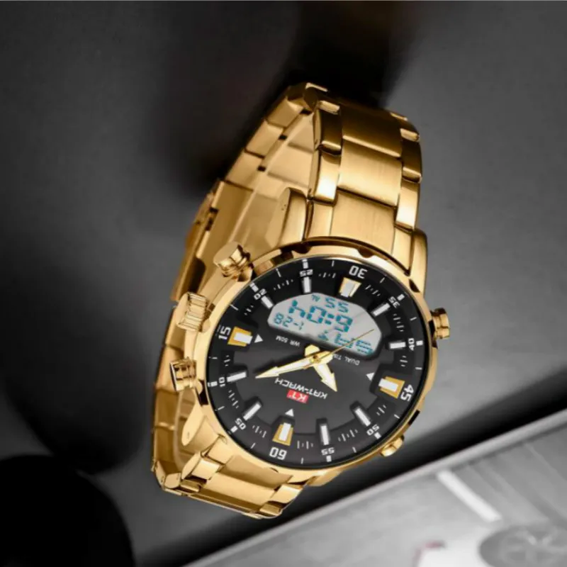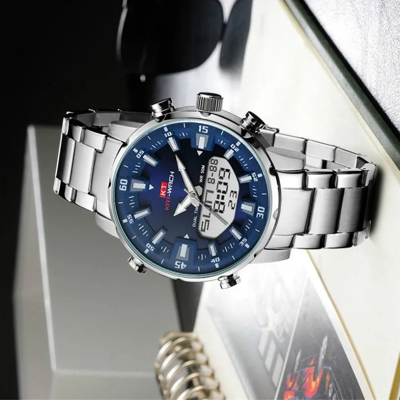 Мужские водонепроницаемые электронные часы с двойным циферблатом