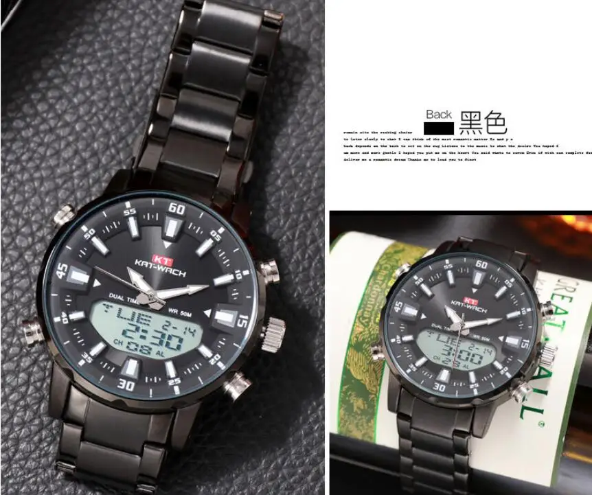 Часы Для мужчин KAT-WACH лучший бренд класса люкс в стиле милитари спортивные Повседневное Водонепроницаемый Для мужчин s часы кварцевые Нержавеющаясталь наручные часы