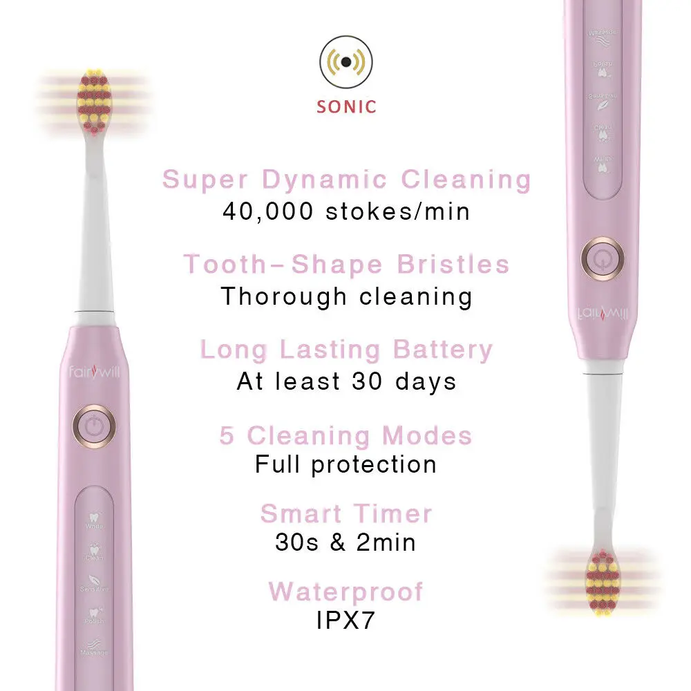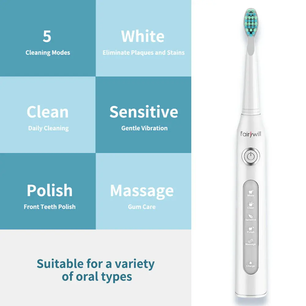 Fariywill Электрический Sonic зубная щетка FW-507 IPX7 Водонепроницаемый Перезаряжаемые USB считыватель смарт-таймер для здорового стоматологическую чистку ультра sonic