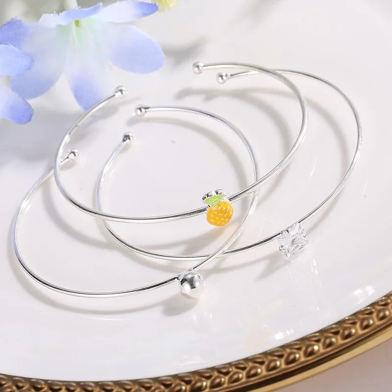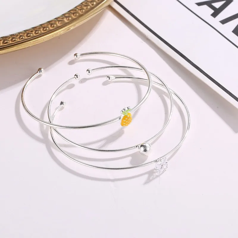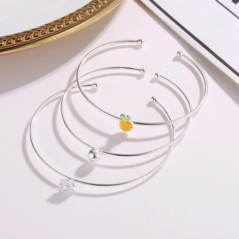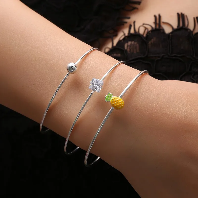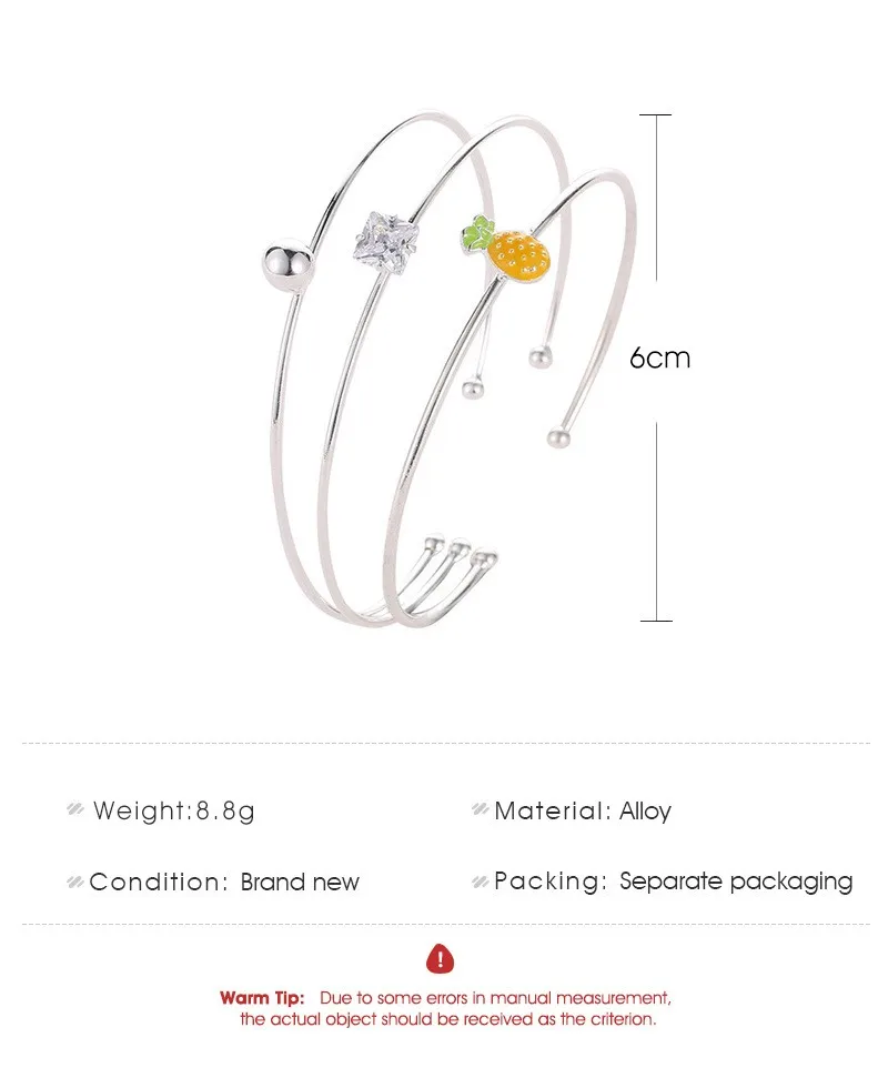 Модное серебряное кольцо Цвет с украшением в виде кристаллов с рисунком ананаса Шарм Набор браслетов 3D геометрическим декором в виде шариков, ручная манжета летние браслеты набор, ювелирное изделие, подарок