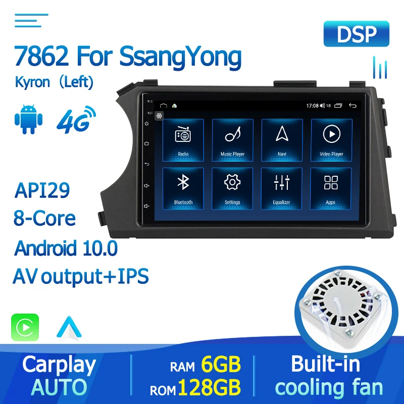 DSP 1280*720 RDS 6 + 128G Carplay GPS для SsangYong Korando 2010 20...