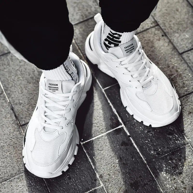 Кроссовки мужские спортивные на платформе, дышащие, спортивная обувь для бега, белые, D-877