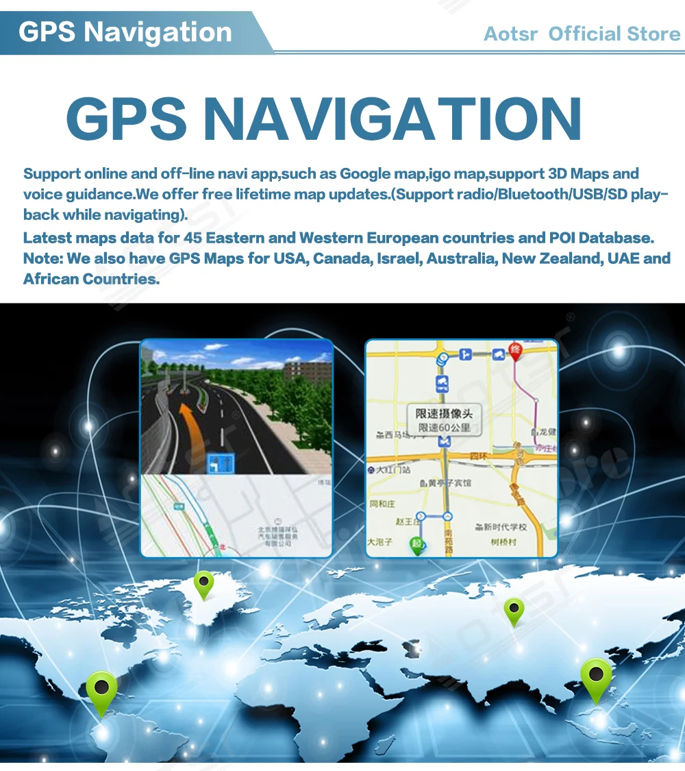 Поддержка офлайн-карт GPS, таких как iGo ,online map и Google maps.