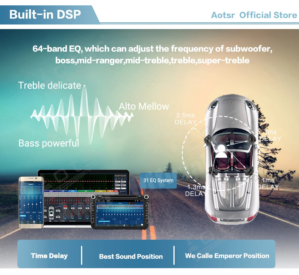 1. Встроенный carplay 2. Голосовое управление (только на английском языке) 3.Google play 4. Быстрая загрузка Камера 5,360 (оптинал) 6. Качество звука без потерь Bluetooth 5,0 7. Многоэкранное взаимодействие 8.AHD 9.Android Auto 10.PX6/PX5/MTK 11. Разрешающая способность: 12,2 ГБ/4 Гб RAM 13. Особенности DSP: может улучшить автомобильное аудио, улучшить качество звука, поддержать объемный 3D-звук. В качестве чипа был встроен этот блок.