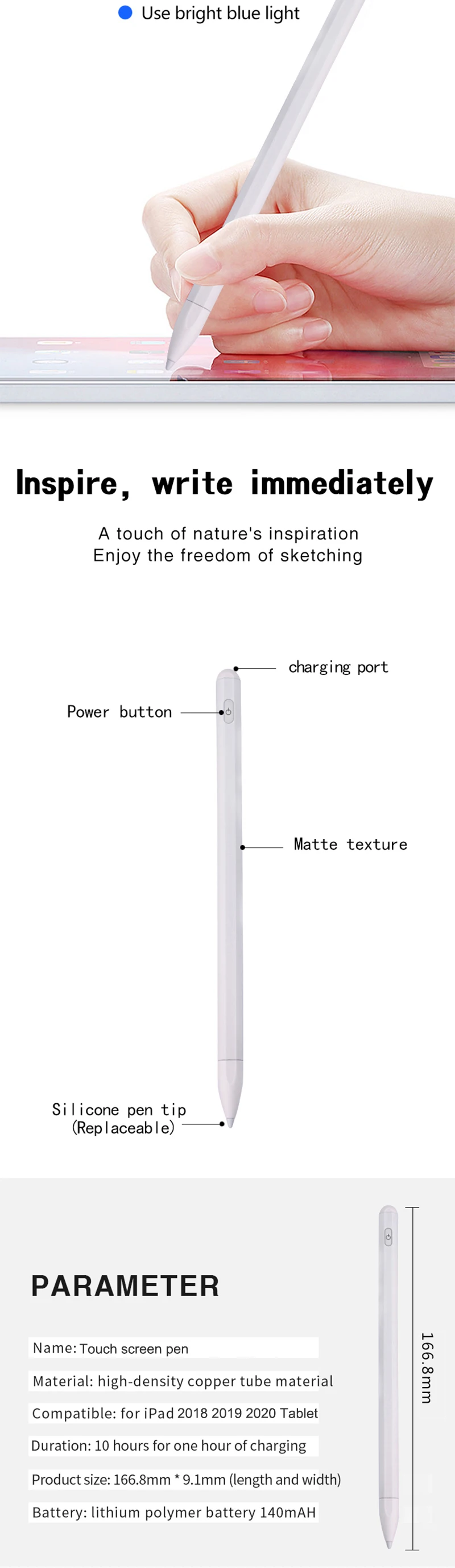 Стилус для сенсорного экрана, активный стилус для Apple Pencil 1 2, стилус spen для iPad Pro 11 12,9 2018 2020 7th 8th Air 3 4 S Pen