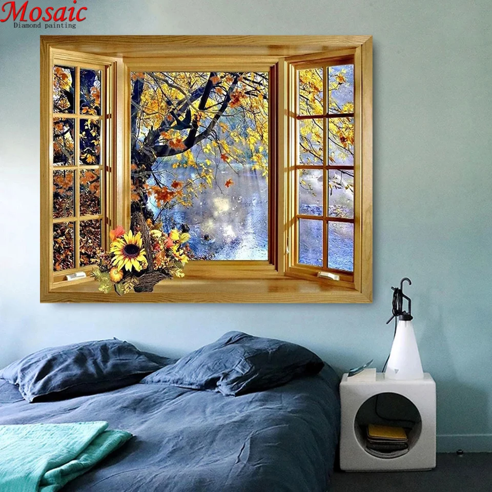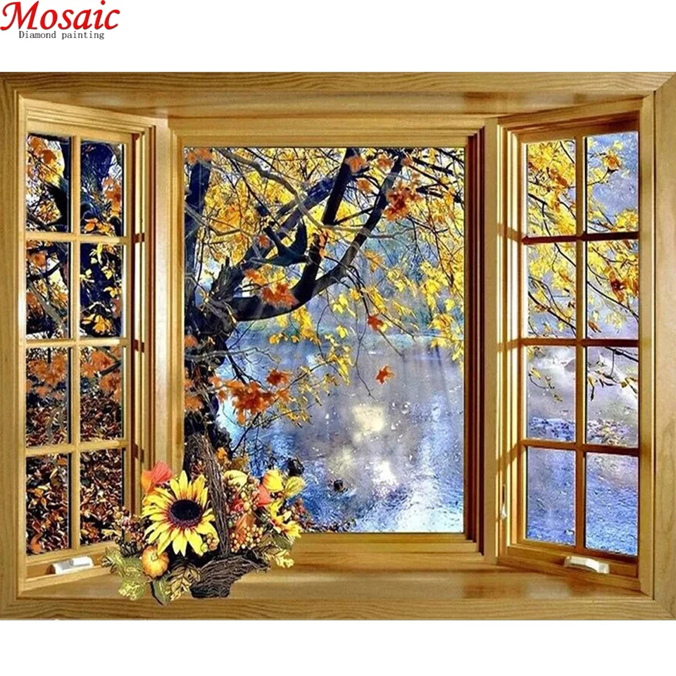 Алмазная 5d-картина сделай сам, вышивка крестиком на окно, на улице, в дереве, озере, полная выкладка квадратными и круглыми стразами, декоративно-прикладное искусство