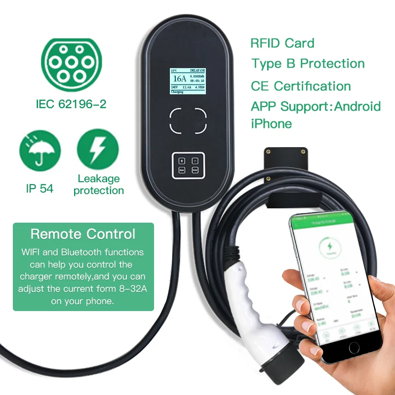 16A 1 фаза EVSE Wallbox EV зарядное устройство зарядная станция с кабелем типа 2 IEC 62196-2 для зарядки электромобиля