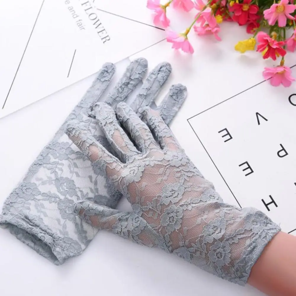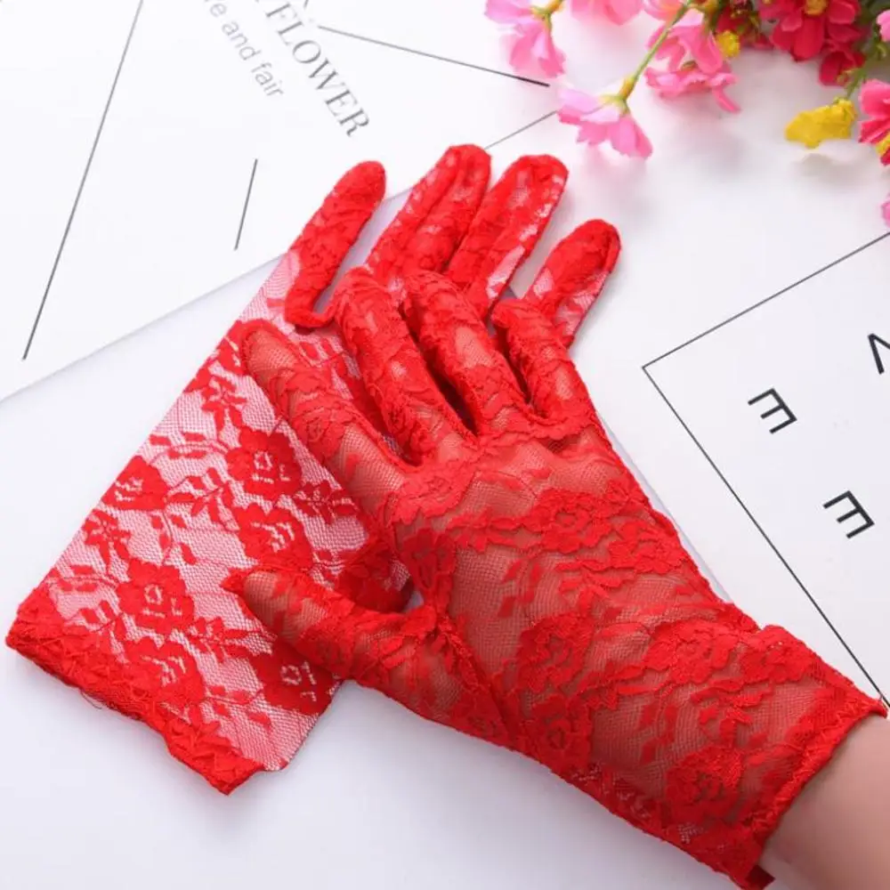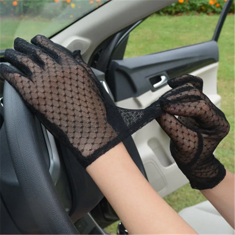 2021 Новые летние перчатки Для женщин с пикантным кружевным плетением черного цвета для вождения перчатки с защитой от УФ Защита от солнечных лучей, для девушек, элегантное, полный палец танцевальные перчатки