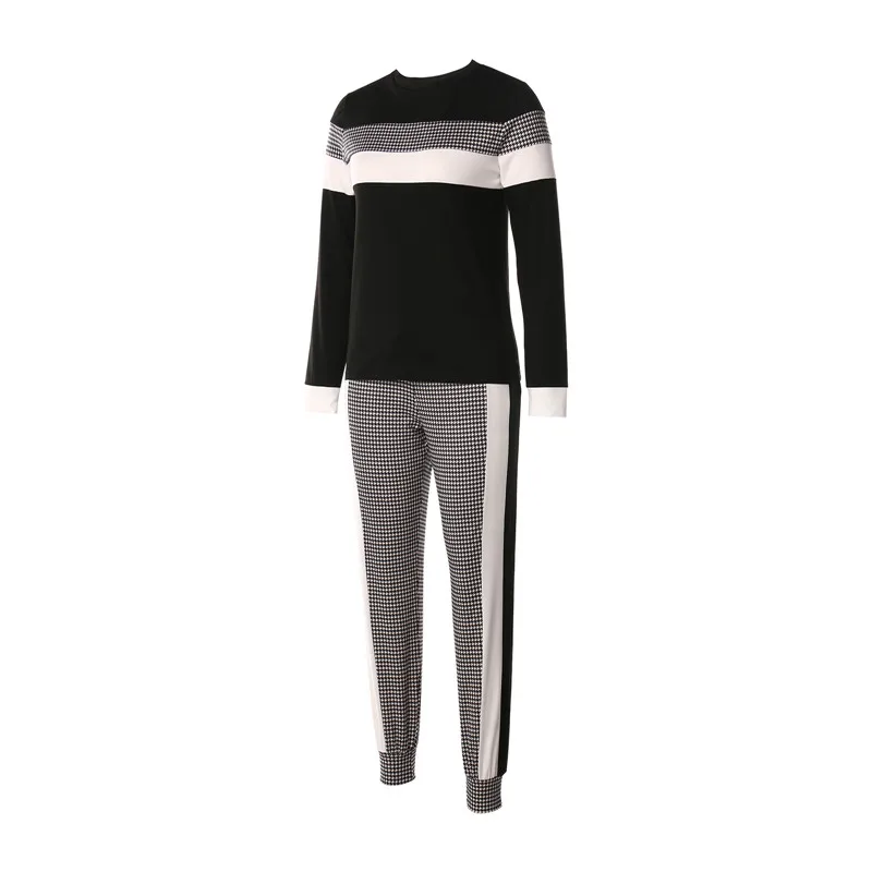 Модные женские комплекты в клетку в полоску, Топ с длинным рукавом,...