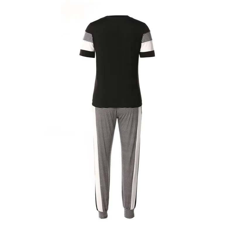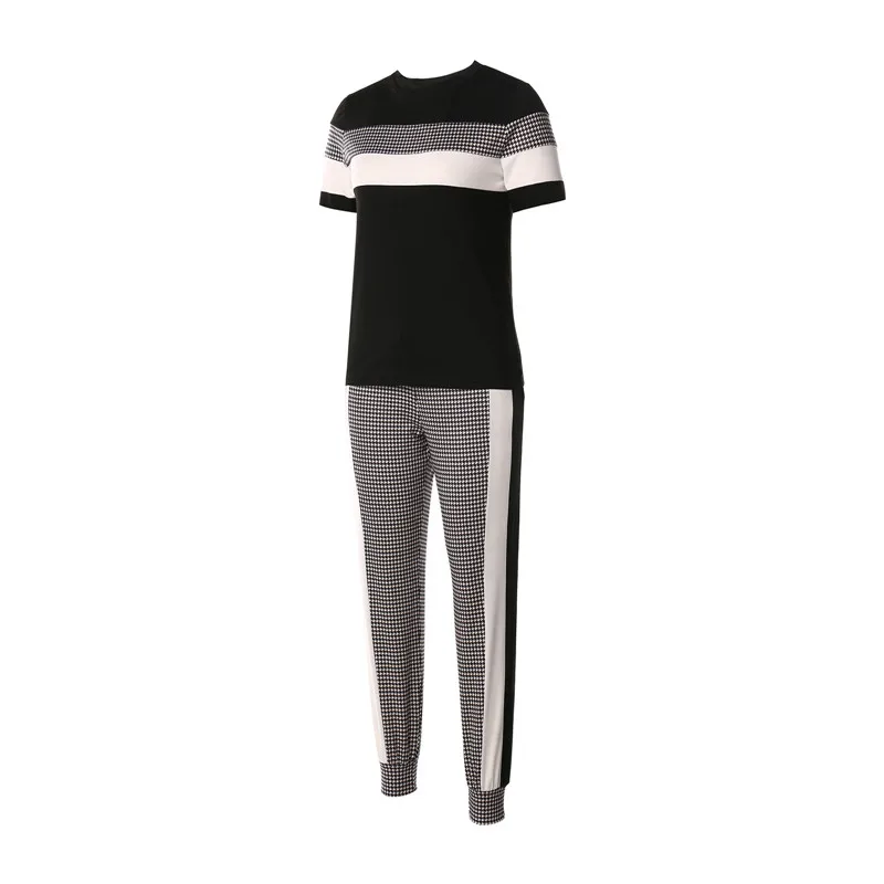 Женский комплект из топа с коротким рукавом и брюк с высокой талией