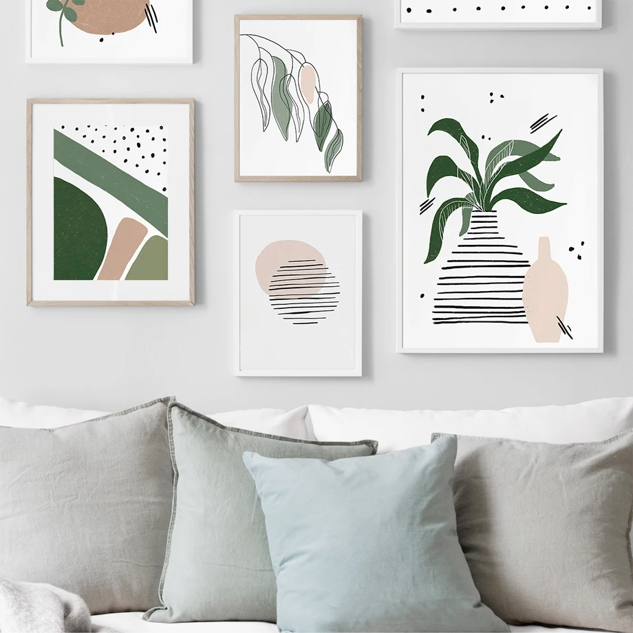 Абстрактная зеленая ваза, листья, настенная Картина на холсте, скандинавские постеры и принты, настенные картины для декора гостиной