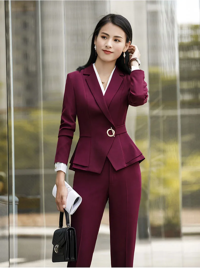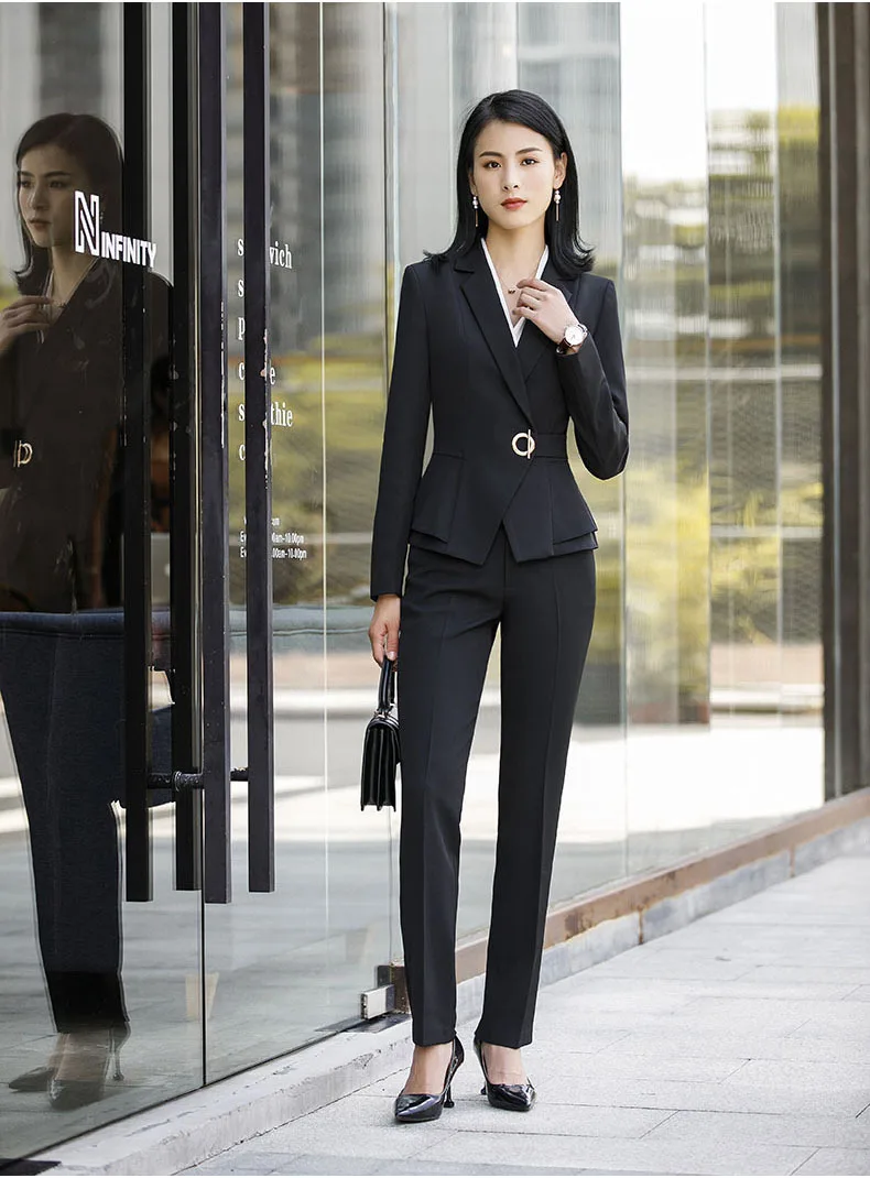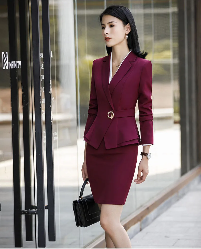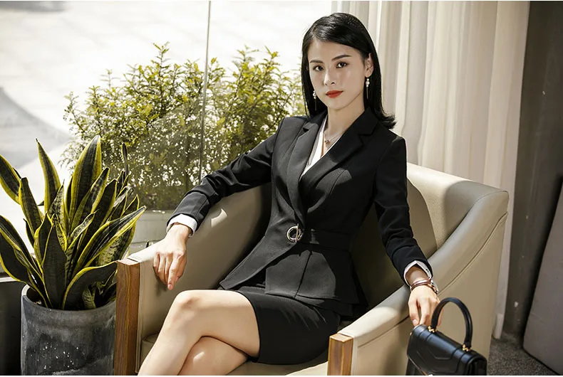 Элегантный Для женщин костюм Офисная Женская юбка Формальные рюшами приталенная куртка + юбка 2 предмета в комплекте, Куртка и юбка костюм для женщин 2021