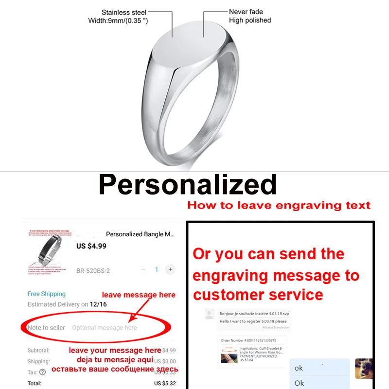 Женские инициалы заказное овальное кольцо с печатью гравированное имя из нержавеющей стали кольцо на палец Пинки ювелирные изделия