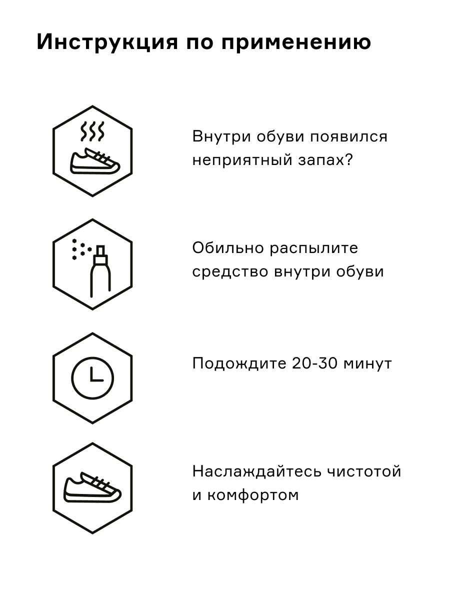Helmetex Shoes – это профессиональное средство, разработанное российскими учеными, которое удаляет источник неприятного запаха, и обладает антибактериальным, противогрибковым и дезинфицирующим действием и действует длительное время.