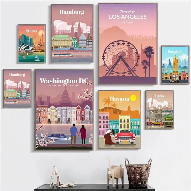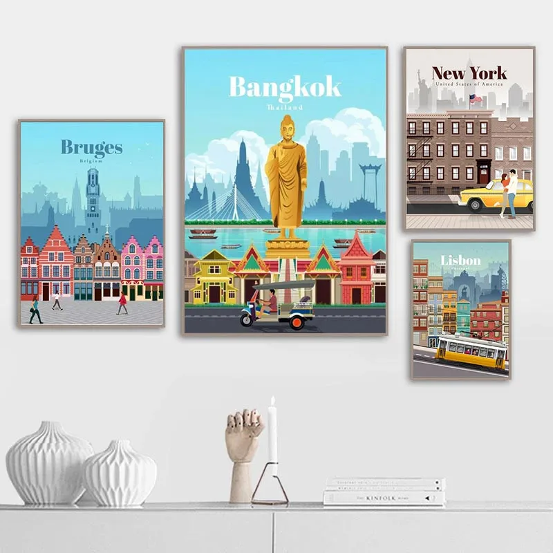 Картина на холсте с изображением городского пейзажа, телефонной будки, Постер в скандинавском стиле с замком, Настенная картина для украшения дома