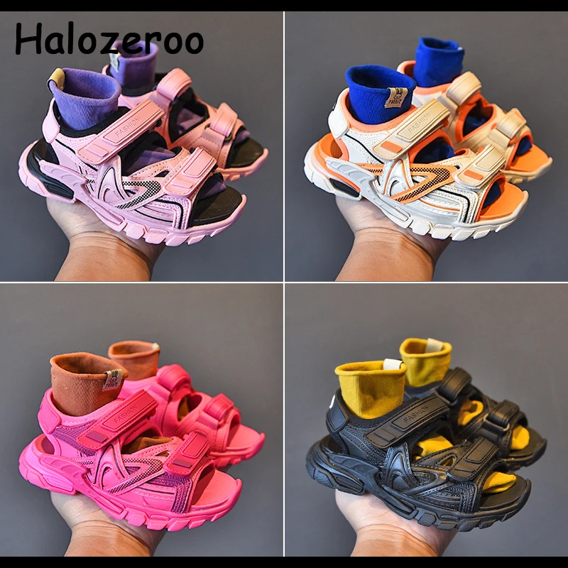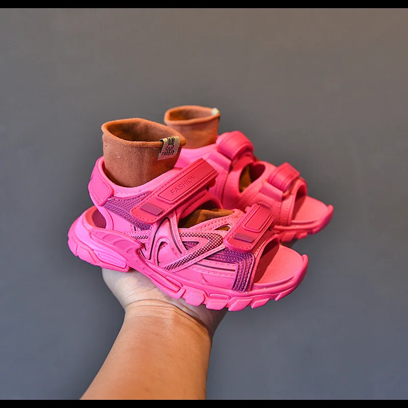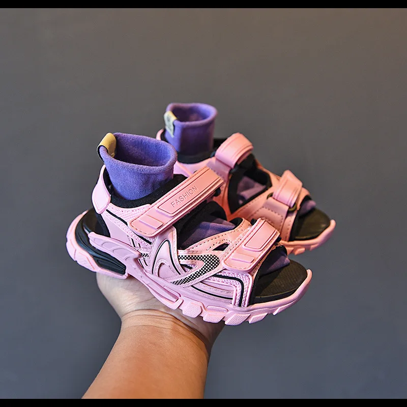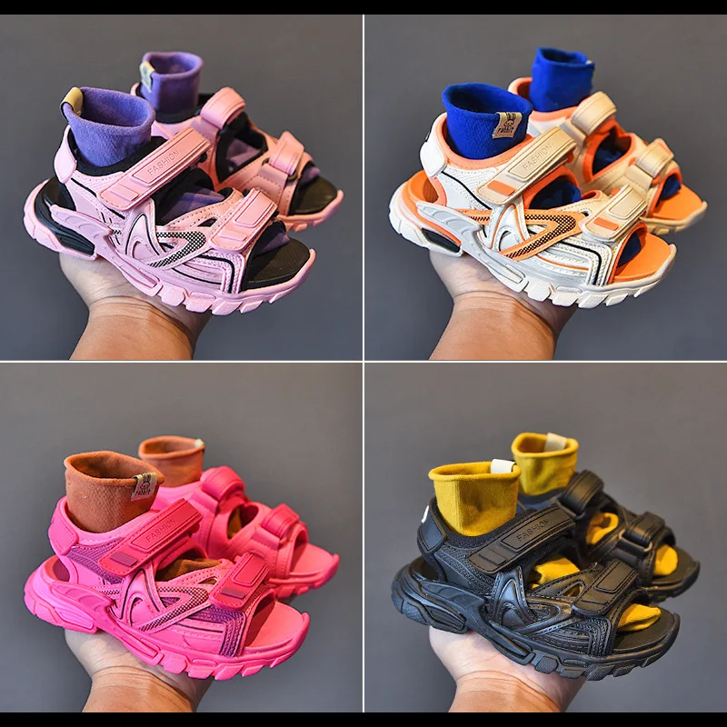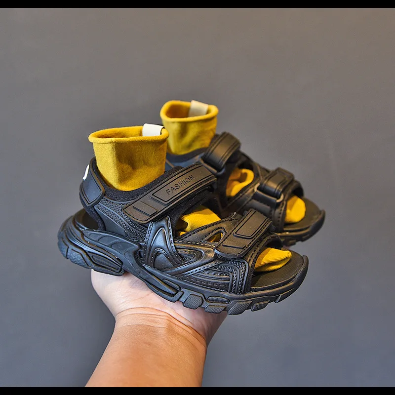 Новинка 2021, летние детские пляжные сандалии, детская черная Брендовая обувь, повседневные сандалии для маленьких девочек, мягкая модная обувь для мальчиков, спортивные сандалии