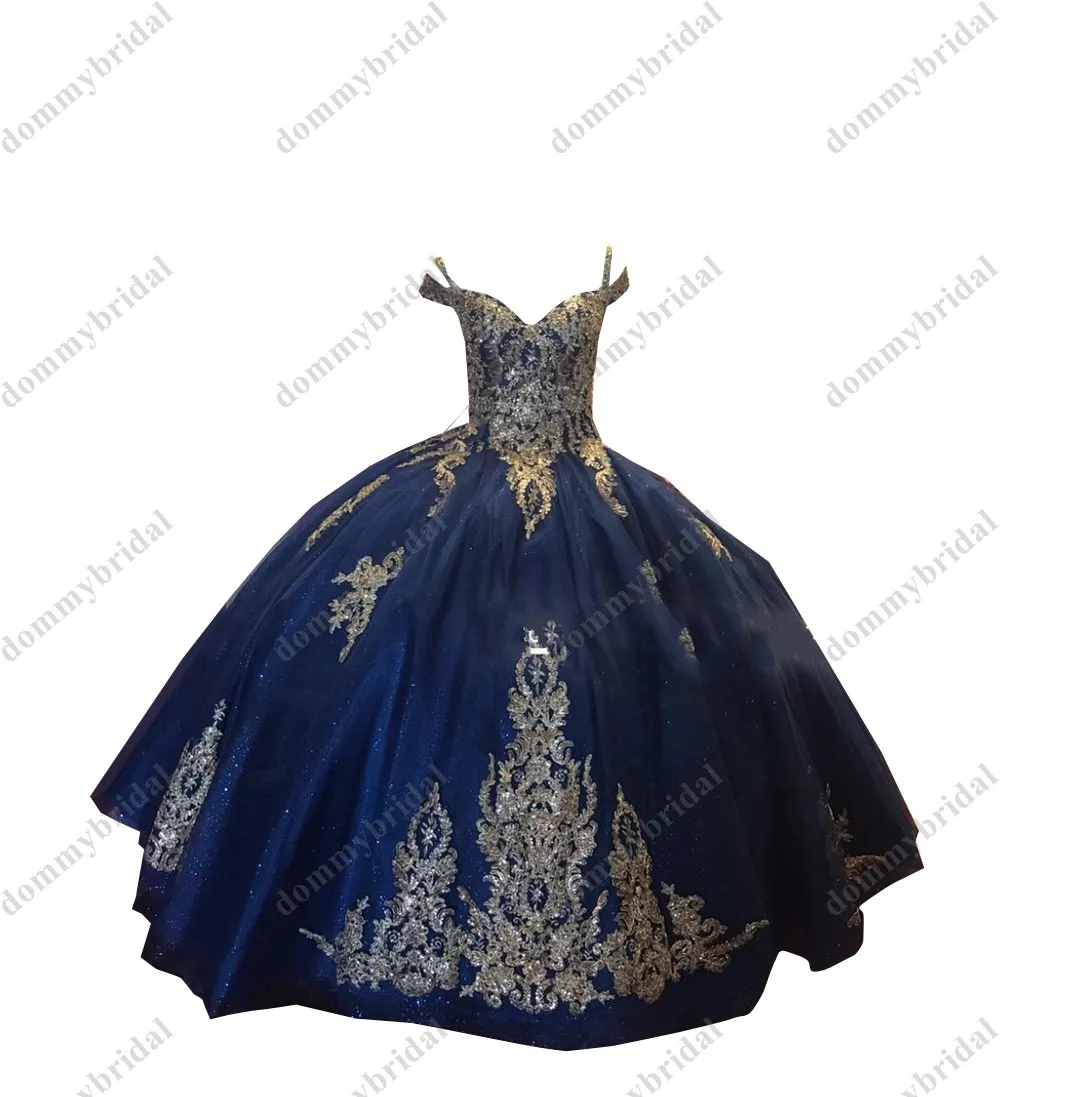 2022 потрясающее бальное платье с золотой вышивкой темно-синие платья в стиле бохо с открытыми плечами для quinceenera на 15 лет Charro с рукавом корсет