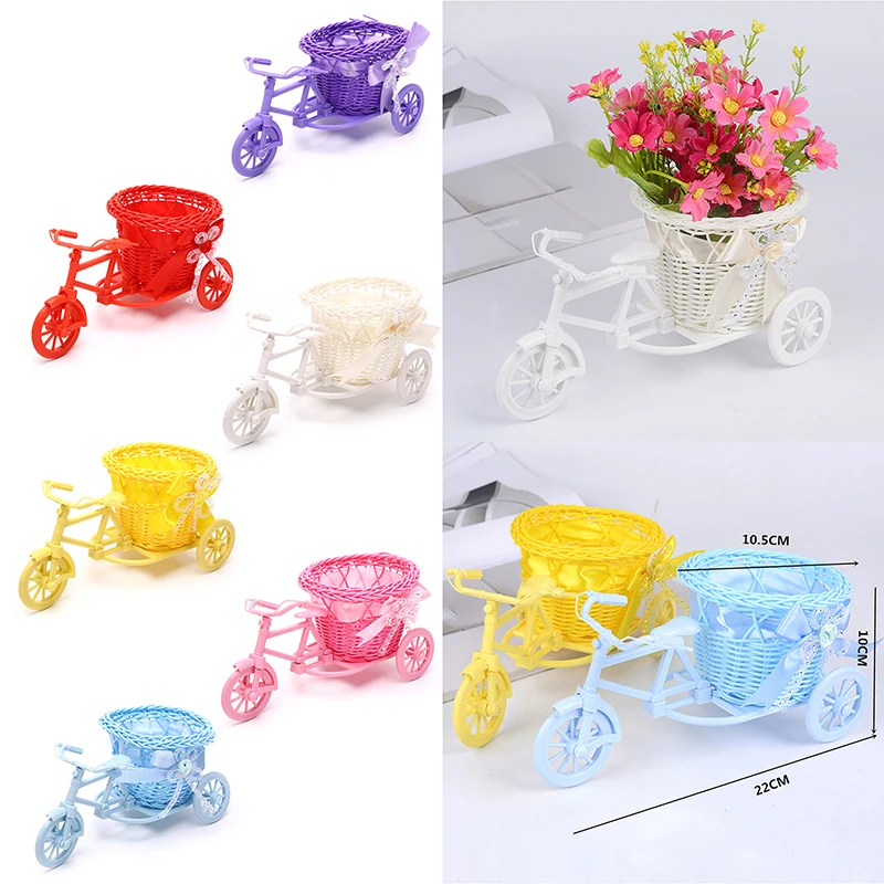В виде велосипеда из ротанга Цветочная корзина-ваза для хранения трехколесные симпатичный цветочный горшок орнамент