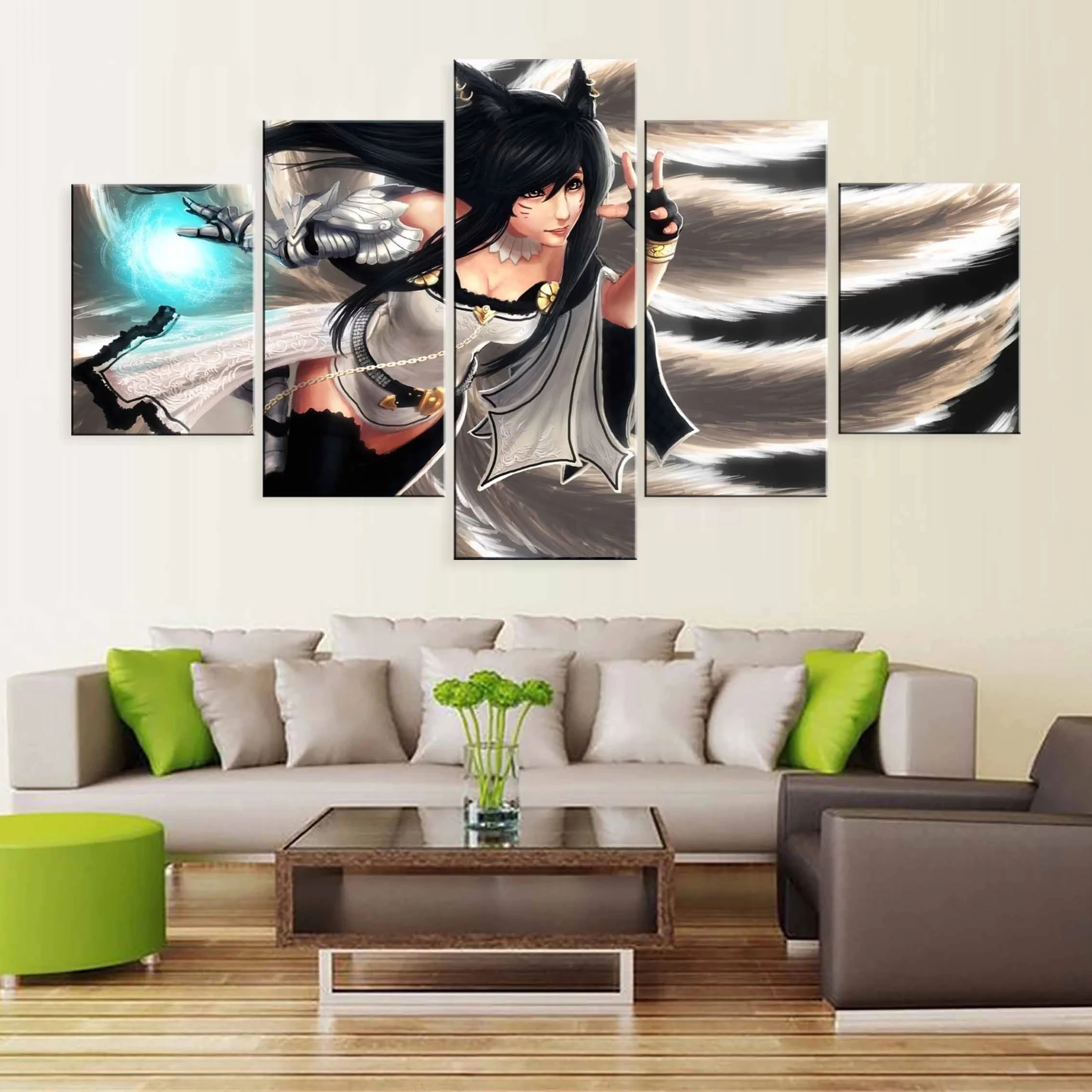 Картина на холсте, 5 панелей, Постер Lol League Of Legends, сексуальная игра Ари, печатные картины, модульная Настенная картина для гостиной, рамка для домашнего декора