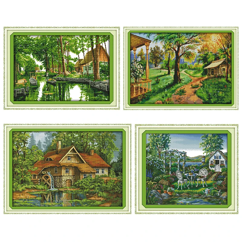 Наборы для вышивки крестом Joy Sunday цветы пейзаж штампованная печ...