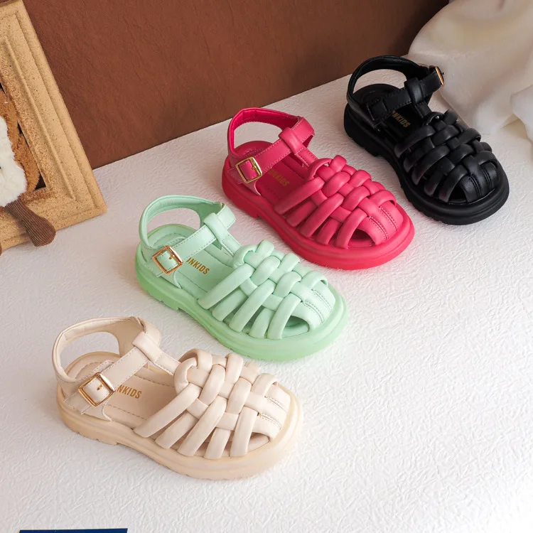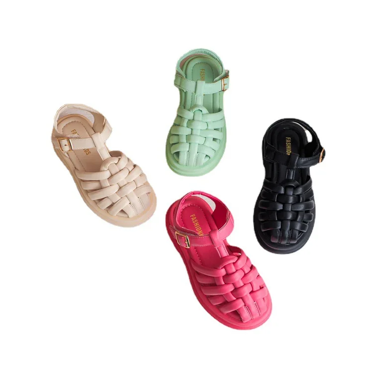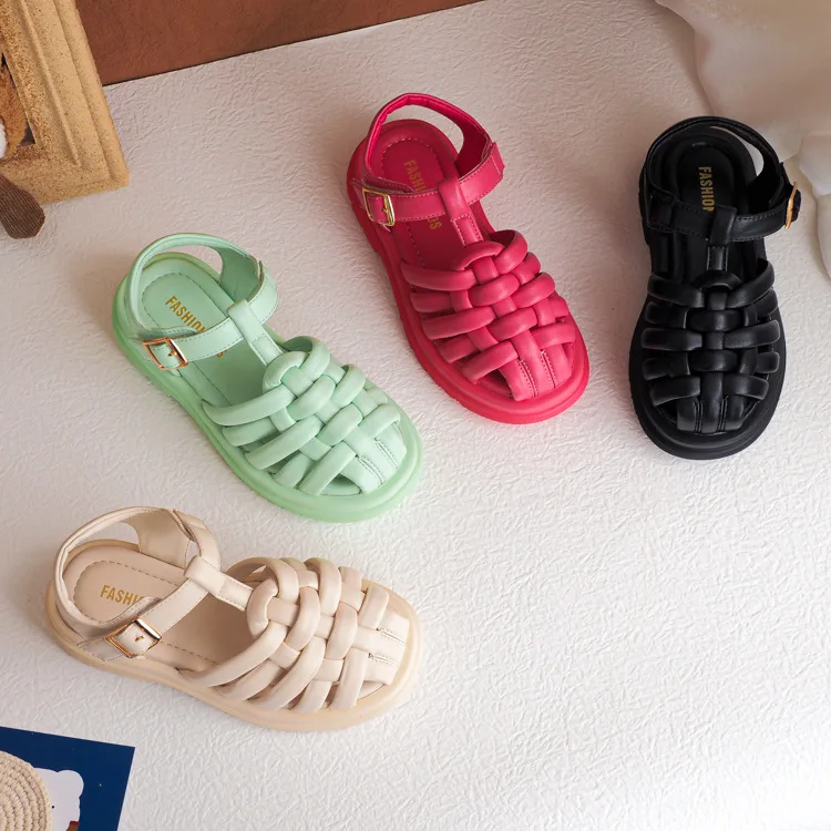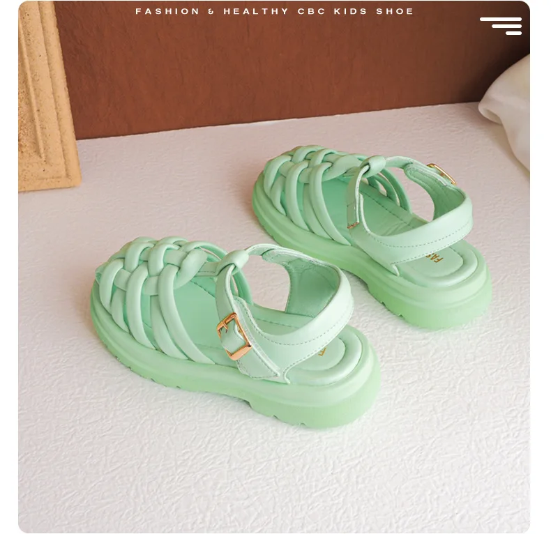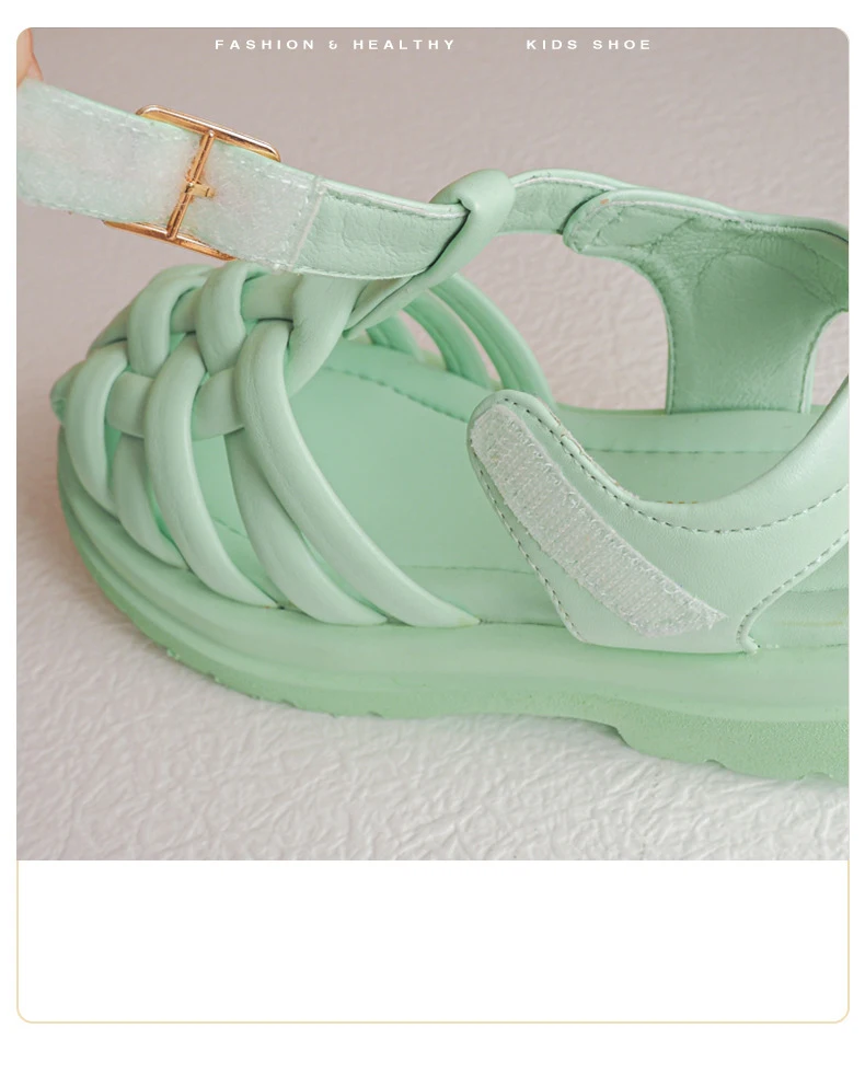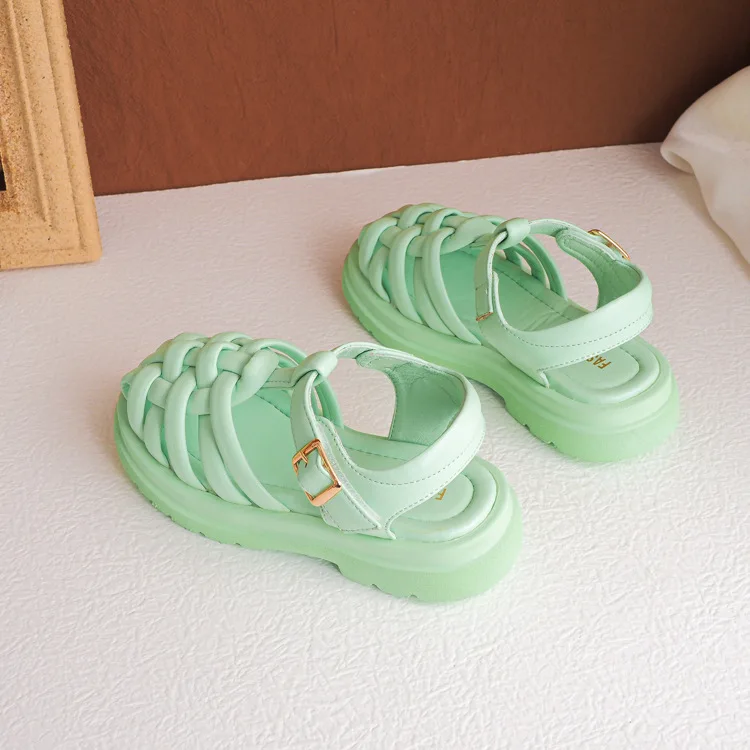 Детские пляжные сандалии, мягкие босоножки для девочек, зеленые брендовые туфли, обувь принцессы с плетением, классические, на лето