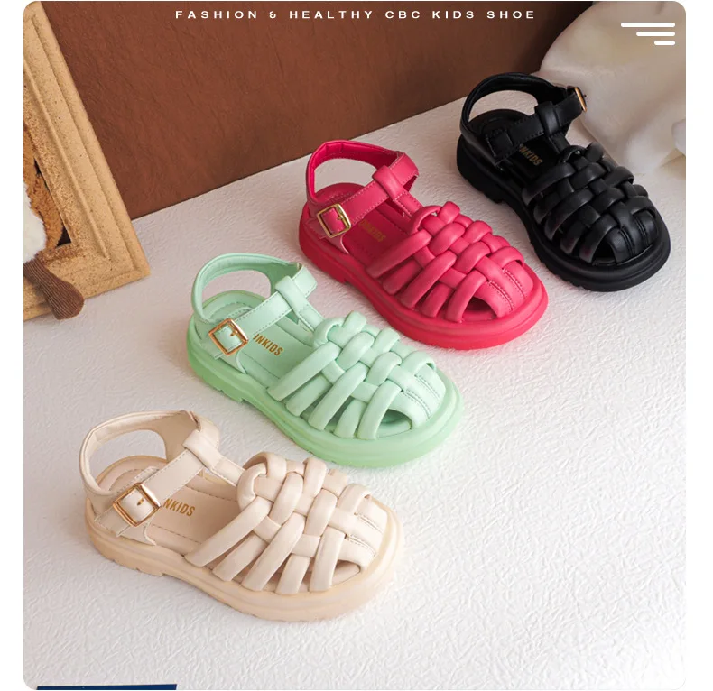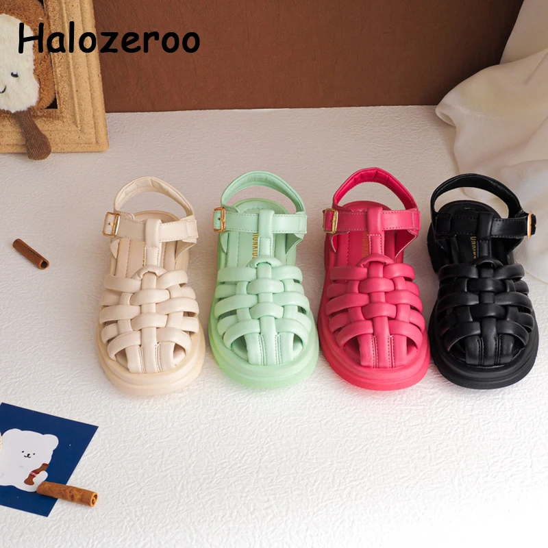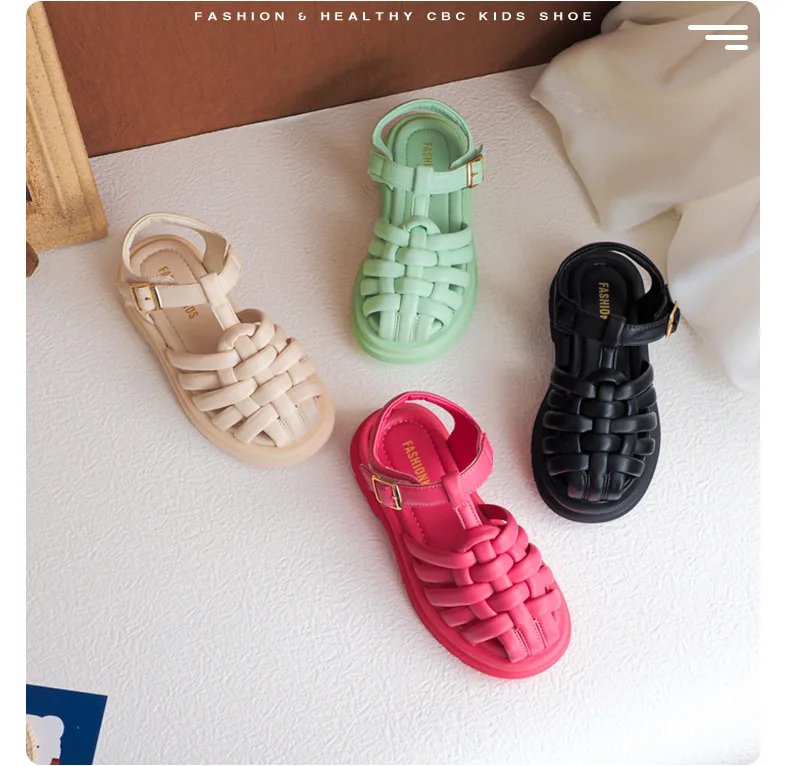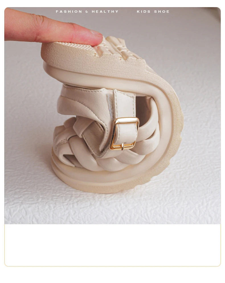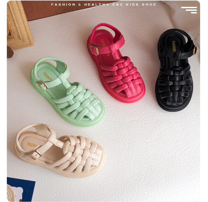 Детские пляжные сандалии, мягкие босоножки для девочек, зеленые брендовые туфли, обувь принцессы с плетением, классические, на лето