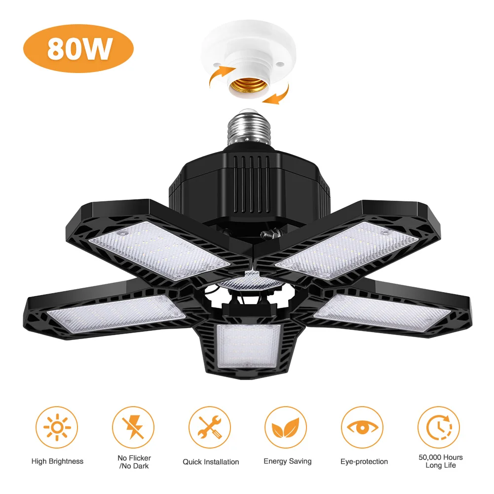 D2 светодиодный светильник для гаража с пятью листами, складной потолочный светильник для гаража E26 E27, лампа для деформации, подвал, внутренняя деформация, высокий светильник