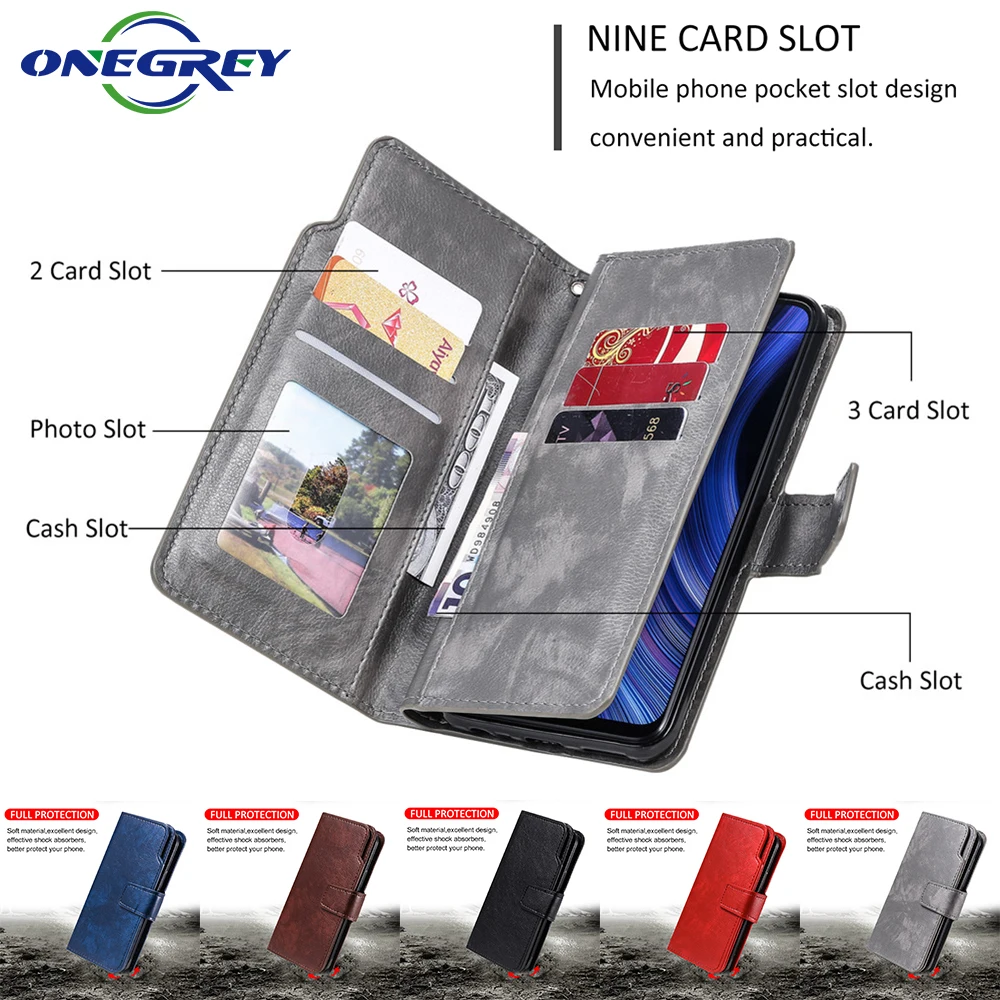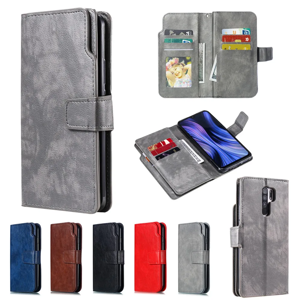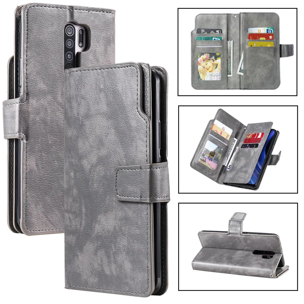 Кожаный чехол-кошелек с девятью отделениями для карт для Xiaomi 11 T Poco M3 M4 X3 Redmi Note 11 4X5 6 7 8 9 10 S 9T 9A 9C 8T K40 Pro Max
