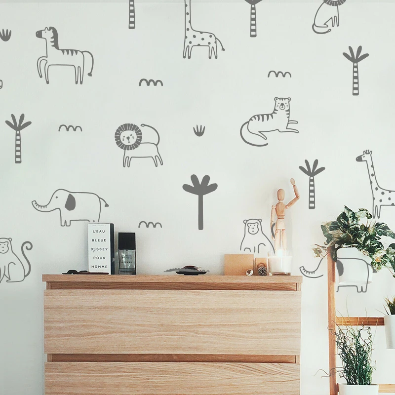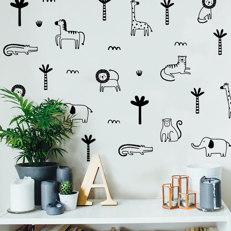 ThemeSafari Jungle Animal Palm Tree Wall Sticker